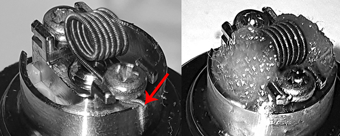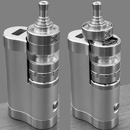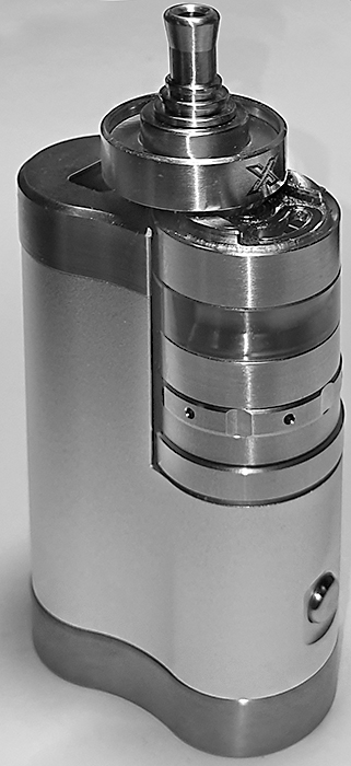 Wie man im Bild von der Stuttgarter HoV-Messe sehen kann, wurde dieses "X"-Modell wohl vom Bottom Filler zum Top Filler verändert. Durch den neuen Schiebemechanismus kann nun auch kein Überdruck mehr im Tank entstehen und so zusätzliches Liquid nicht mehr in die Kammer gedrückt werden!