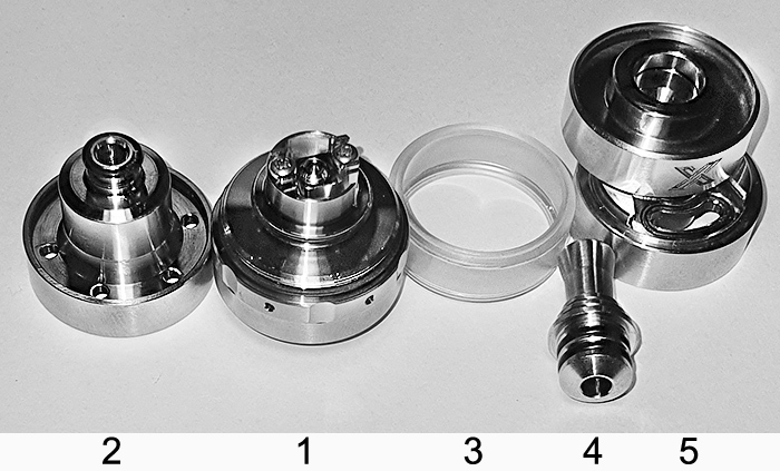 Wenn nun vor dem Füllen (=Zurückschieben) der obere Ring (mit dem eingravierten X drauf) hochgezogen wird, schließt sich nämlich gleichzeitig die Liquidkontrolle, um nach dem Zuschieben auch wieder das Liquid freizugeben. eine geniale Idee, die ich bei all den anderen Schiebemechanismen a la Expromizer & Co. nicht entdeckt habe!