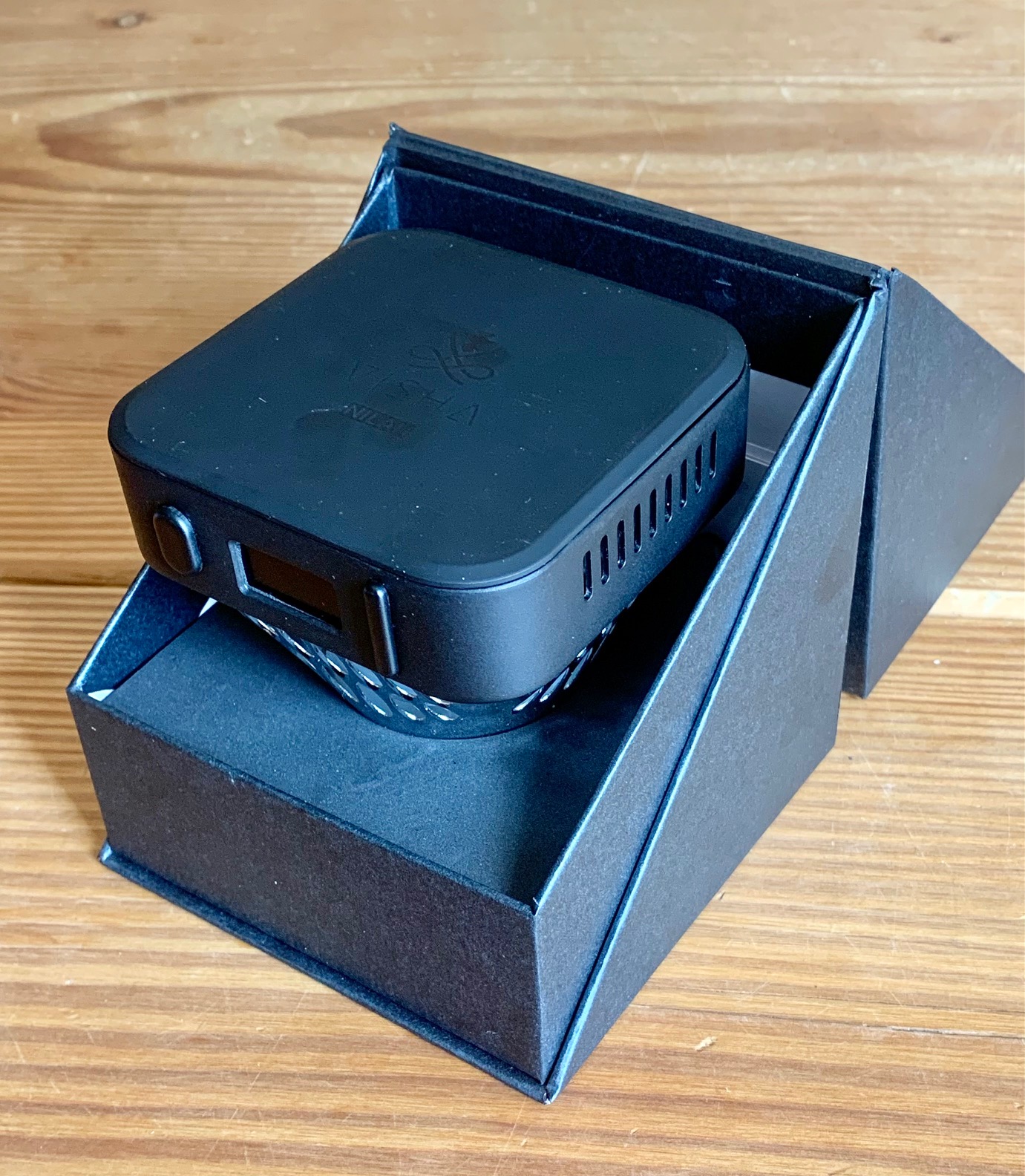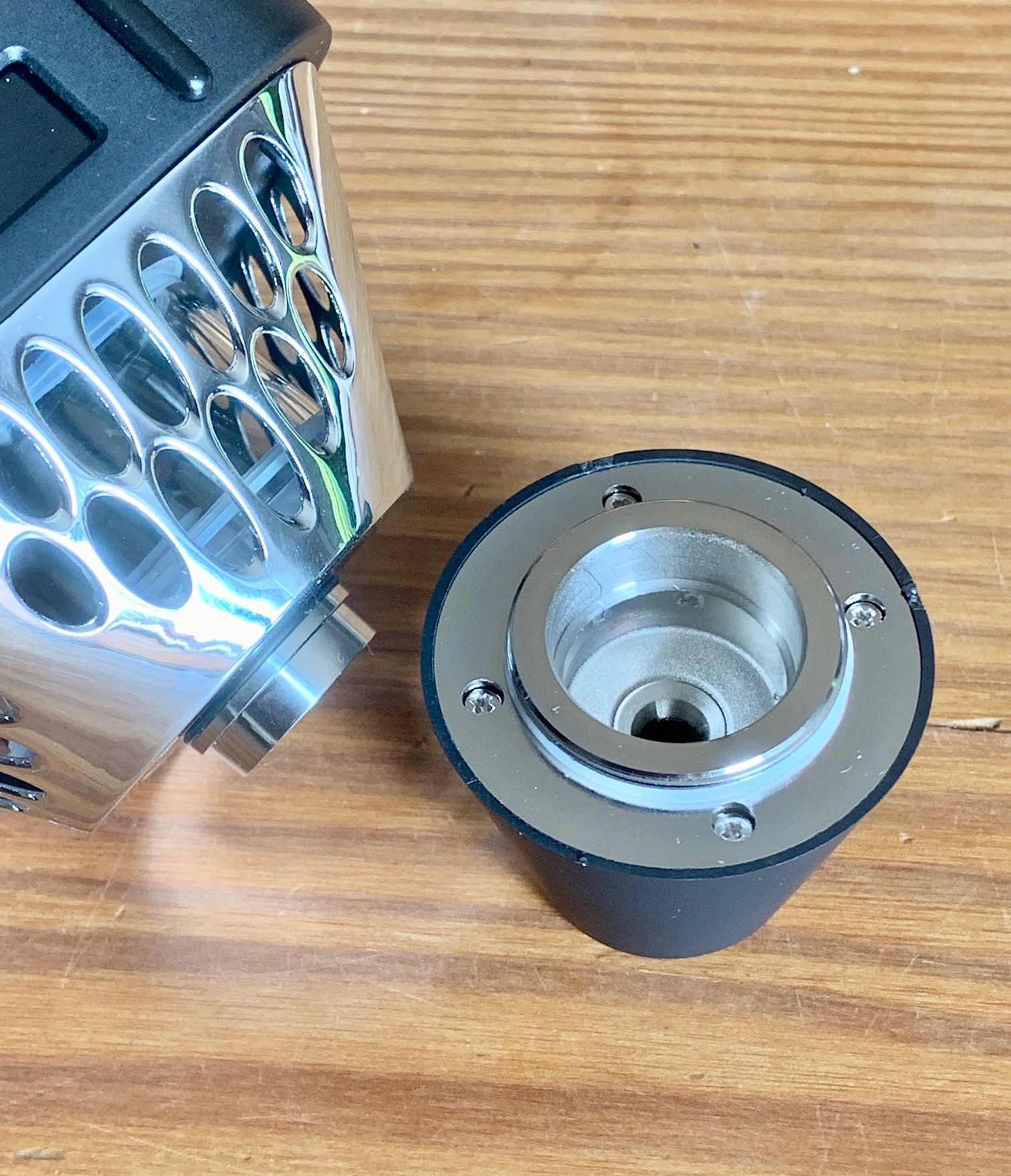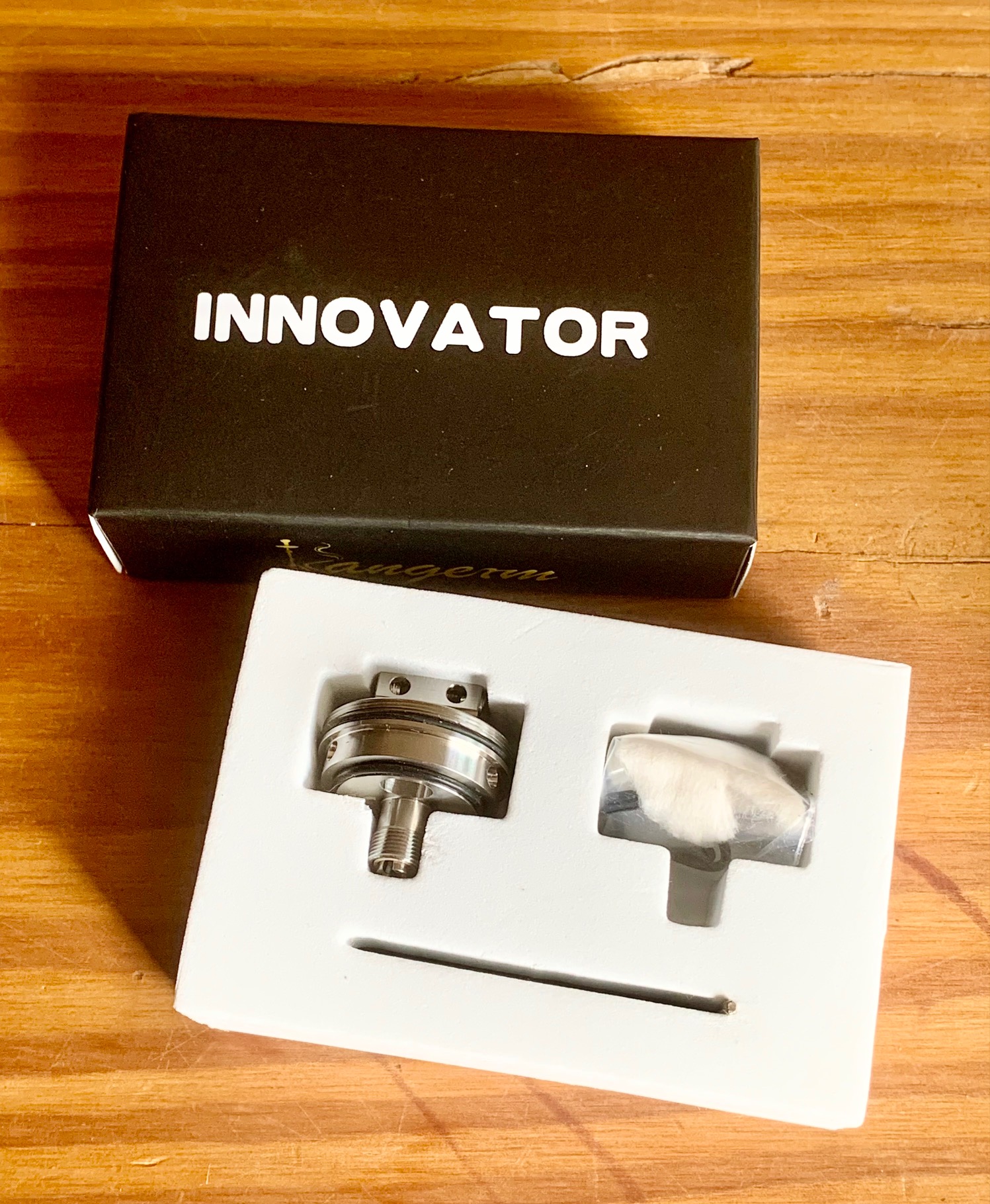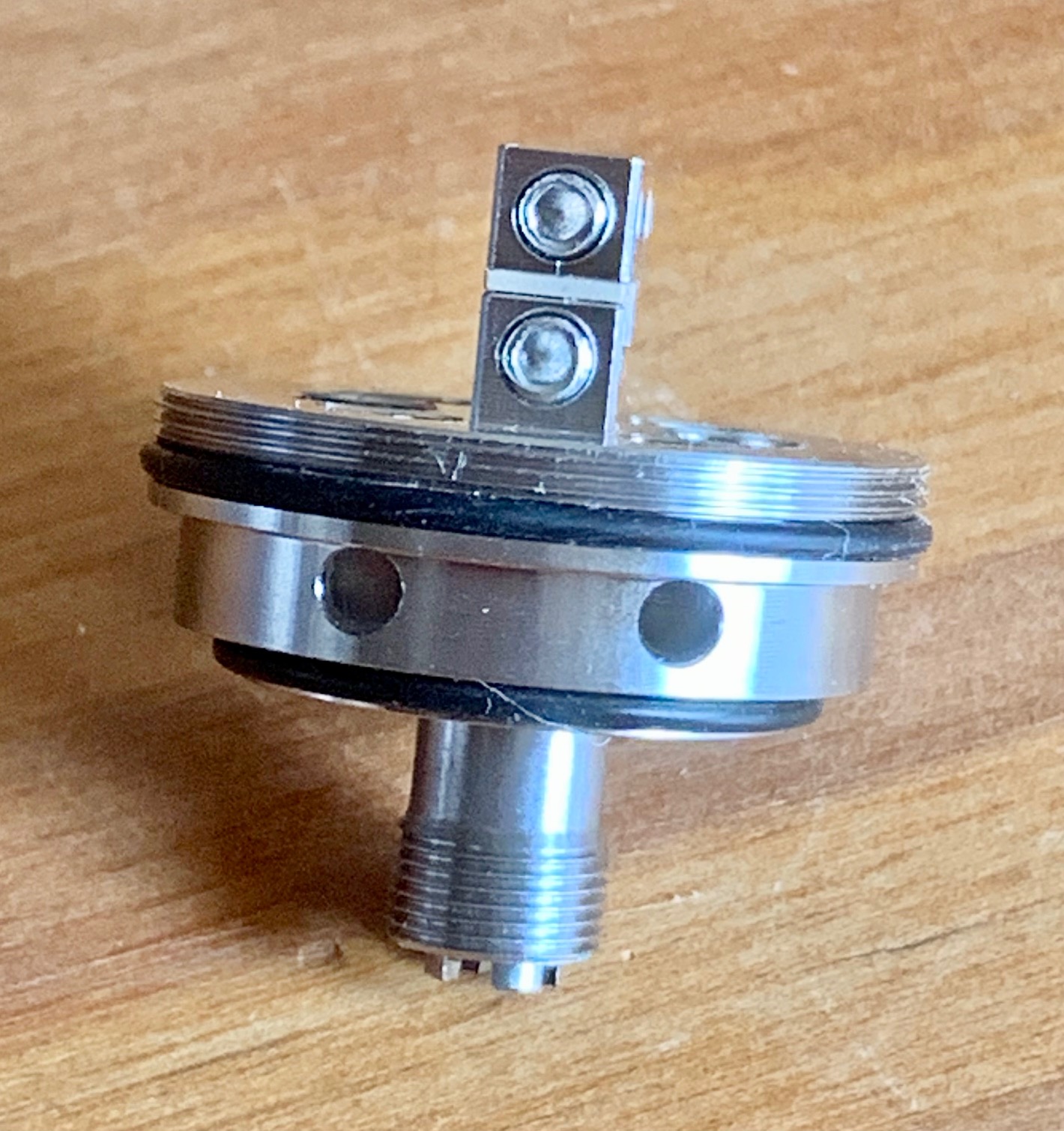 Ich bin zugegeben skeptisch, wie das mit ordentlich Leistung funktionieren soll/kann. Aber das Ding sitzt ja auch verkehrt herum in der Dampfe und die Watte muss das Liquid nicht nach oben ziehen. Dazu kommt der Druck von bis zu 30 ml Liquid. Ich werde sehen.