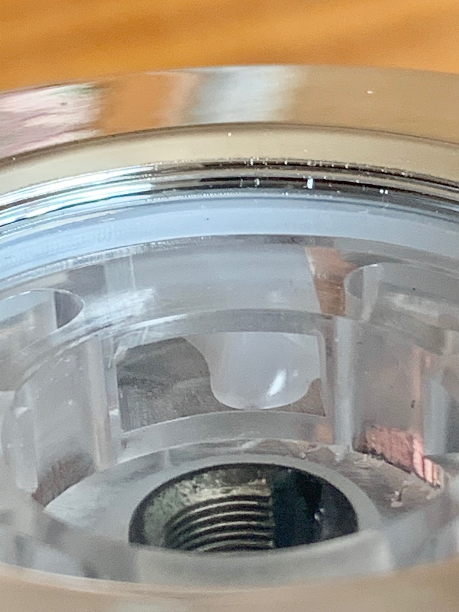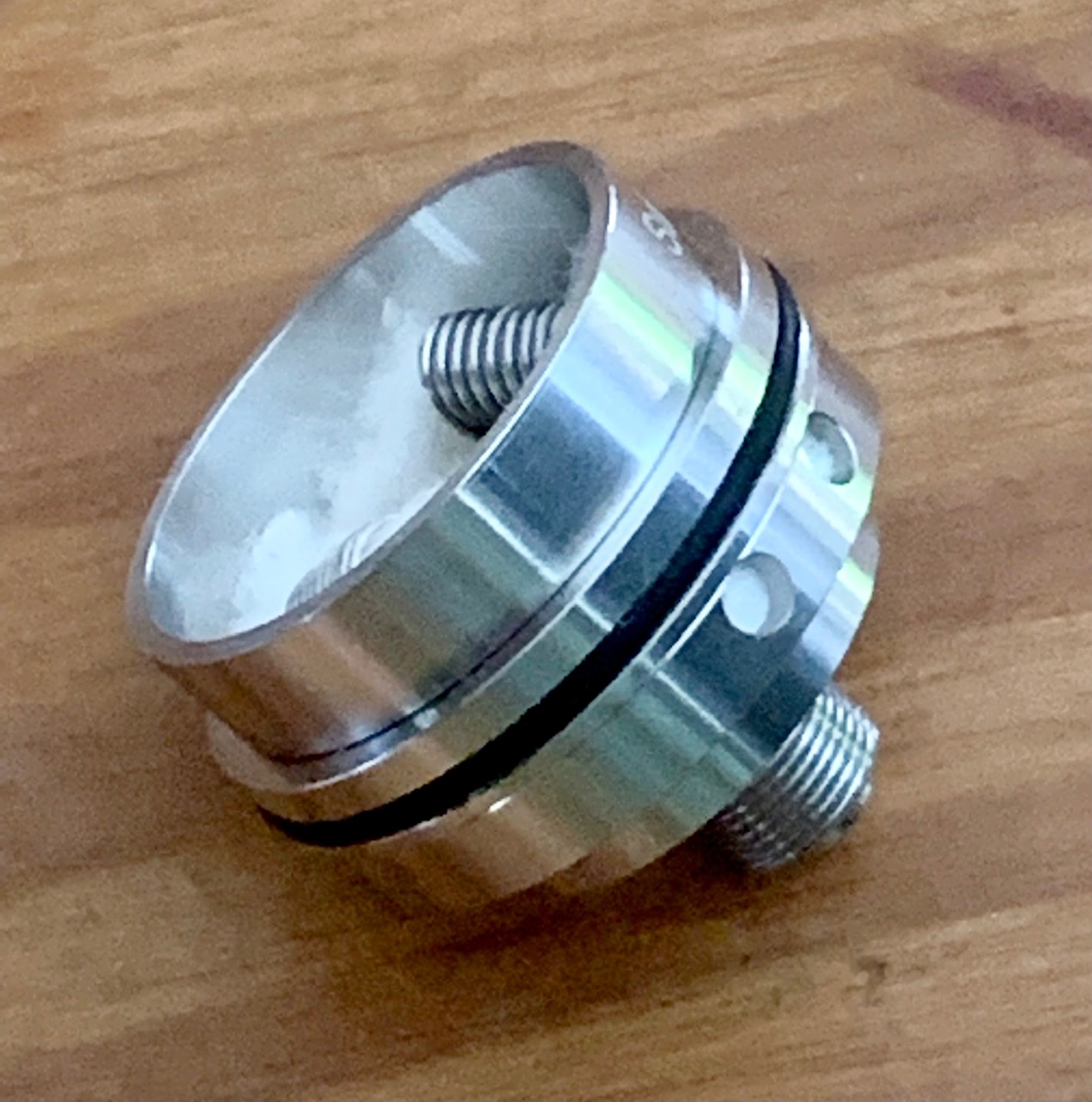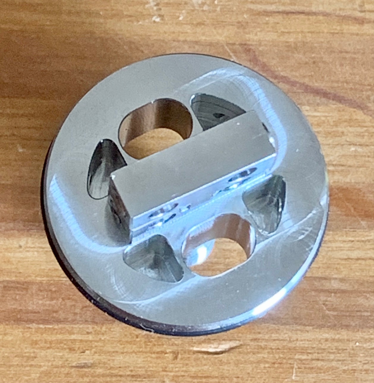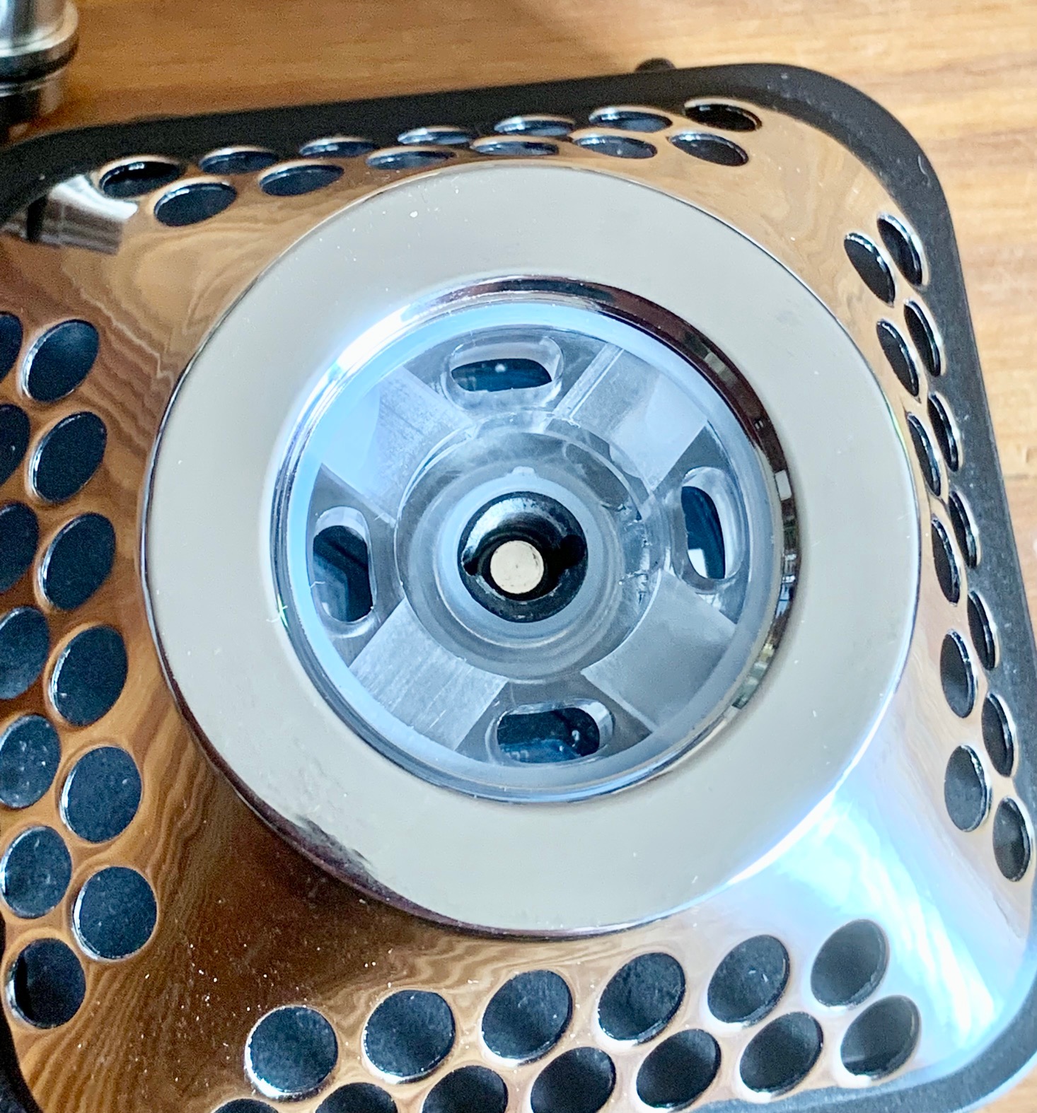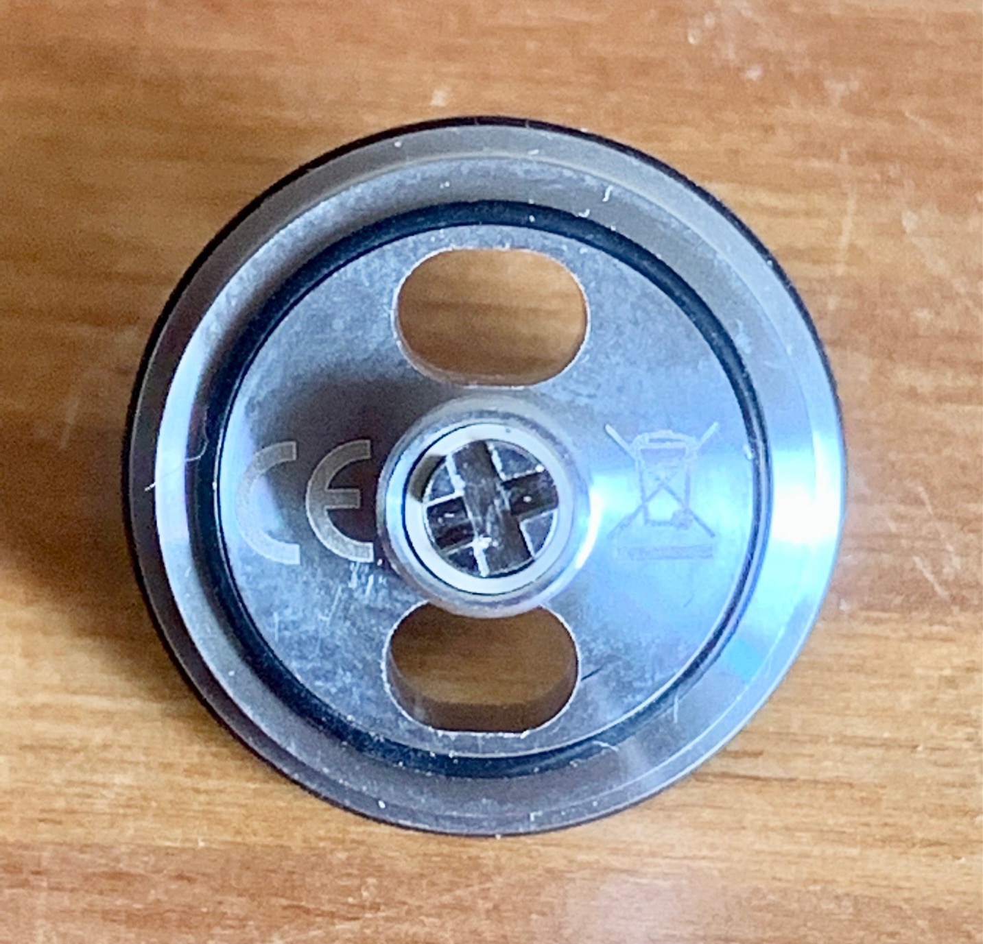 Über die 4 Löcher lässt sich der Tank befüllen, das Kreuz sind die Kanäle für die Luft zu den Coils.