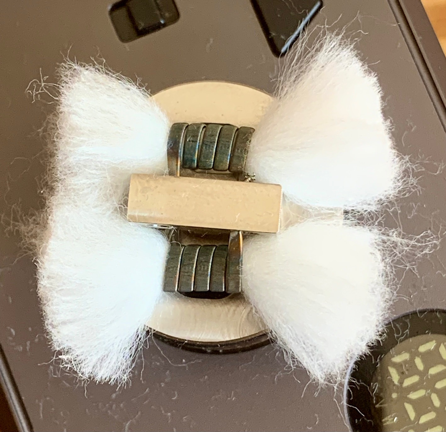 Hab jedenfalls huschhusch die üblichen Ni80 4-Kerner zum Testen reingeworfen (0,13 Ω) und aus obigen Gründen die Watte etwas stärker in den Taschen komprimiert als üblich.