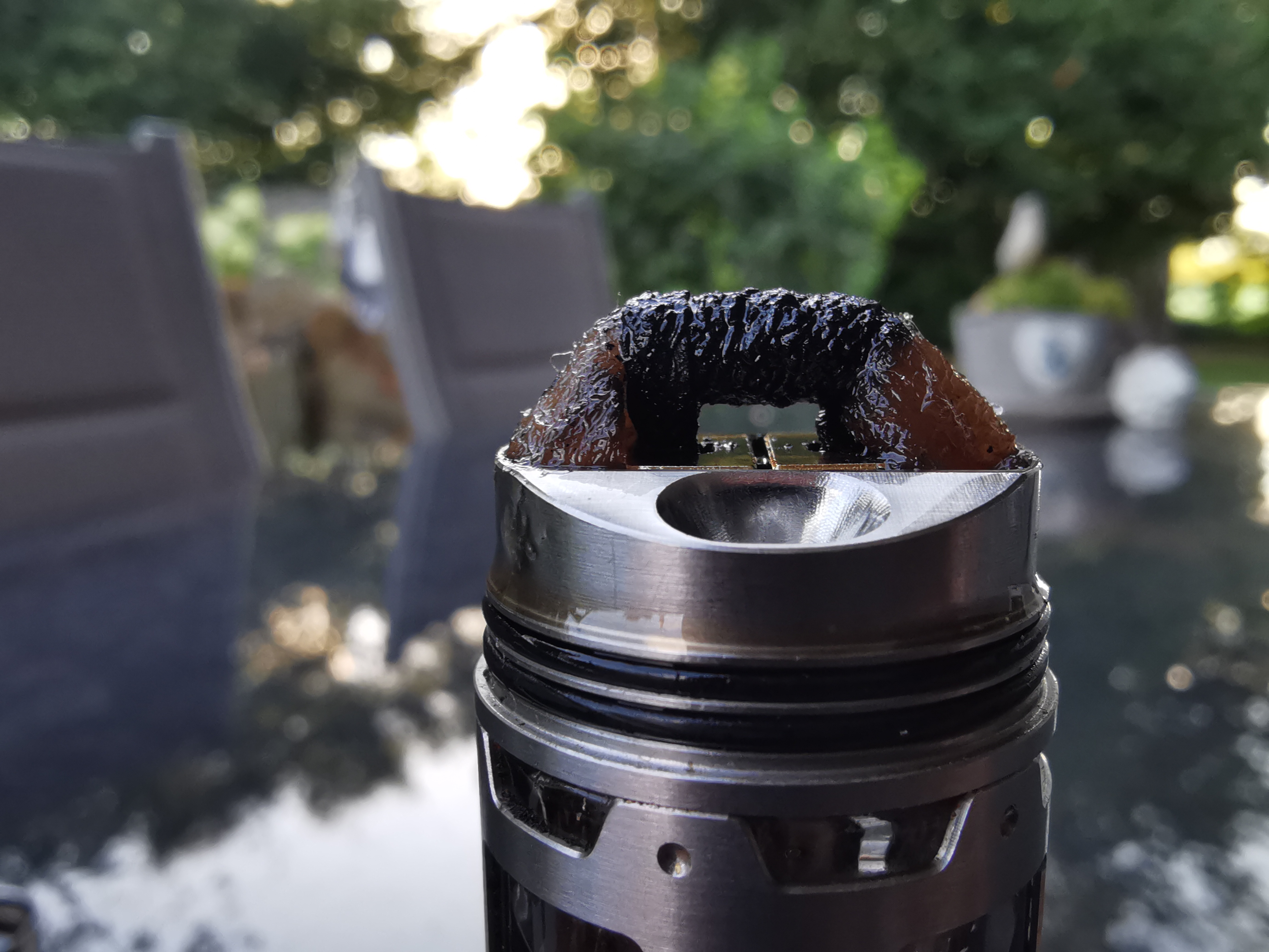 Beinchen wieder auf 4mm. 7 Luftlöcher offen. Der Dampf ist ziemlich "kalt", Geschmack ist immer noch nicht da