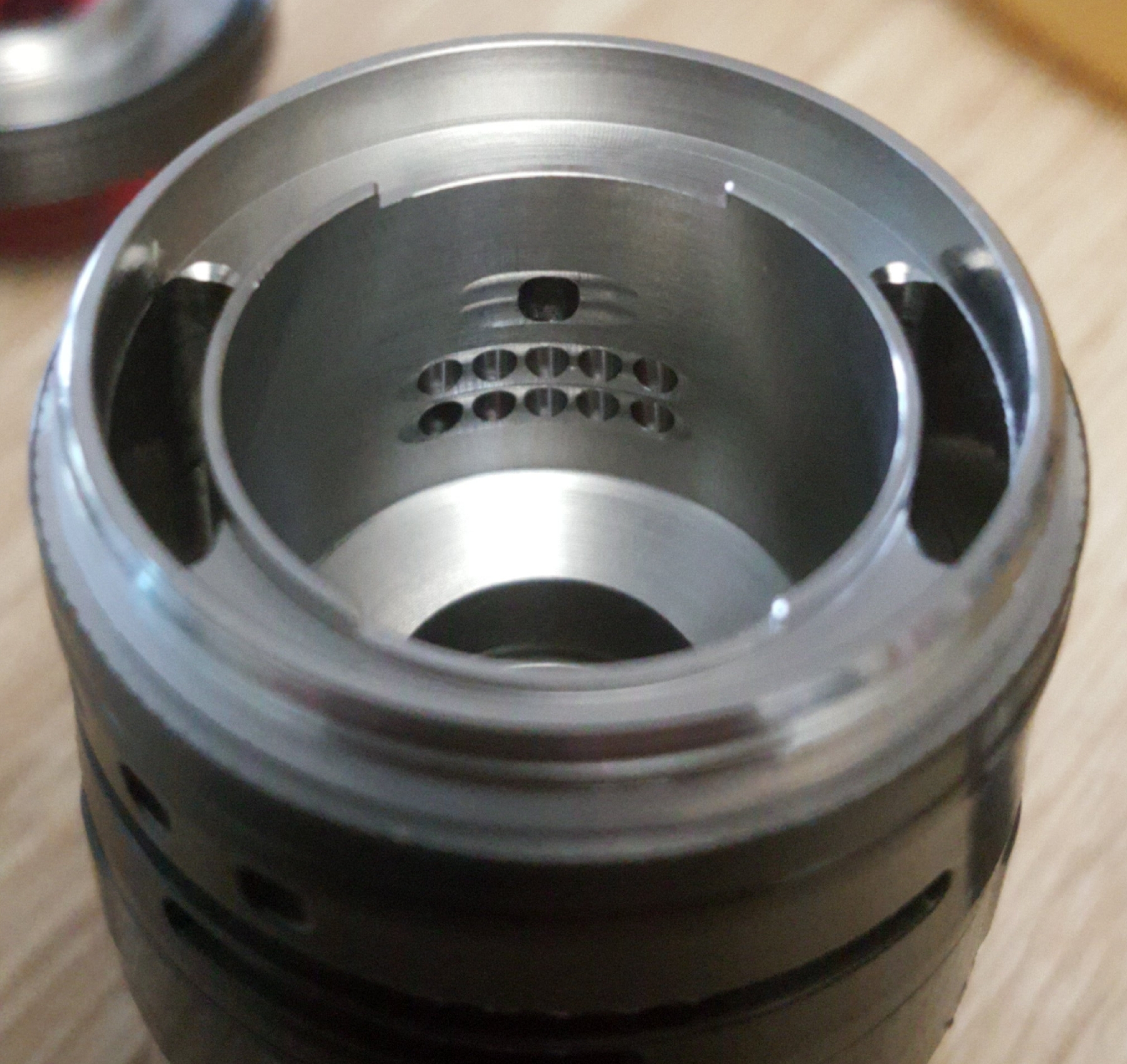 Und hier beim Blick in die Kammer sieht man einen der Gründe warum Steam Crave was besonderes ist: die Airflowlöcher sind gephast, daher pfeift da nix und der Zug wird noch smoother