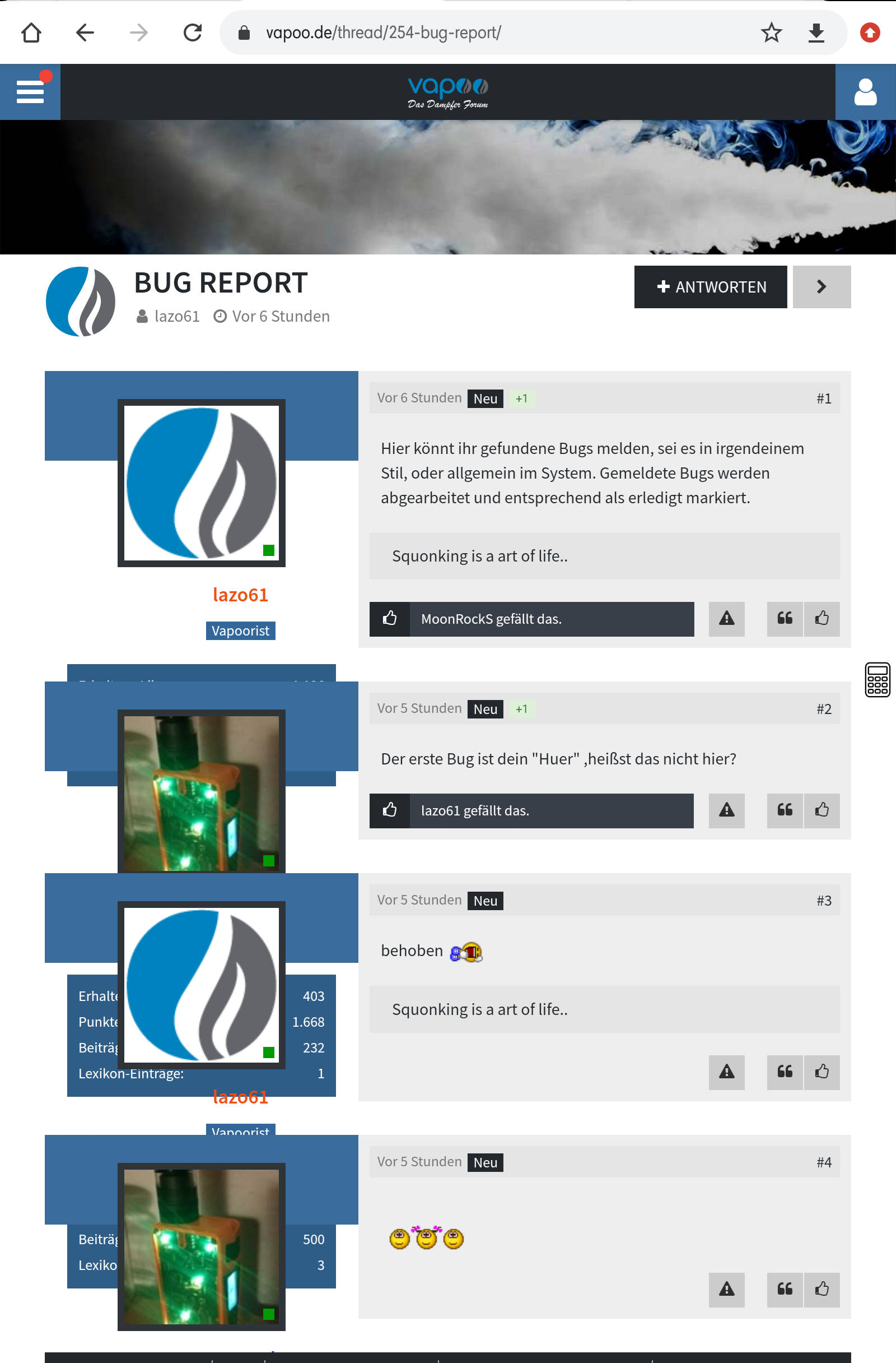 Hier könnt ihr gefundene Bugs melden, sei es in irgendeinem Stil, oder allgemein im System. Gemeldete Bugs werden abgearbeitet und entsprechend als erledigt markiert.