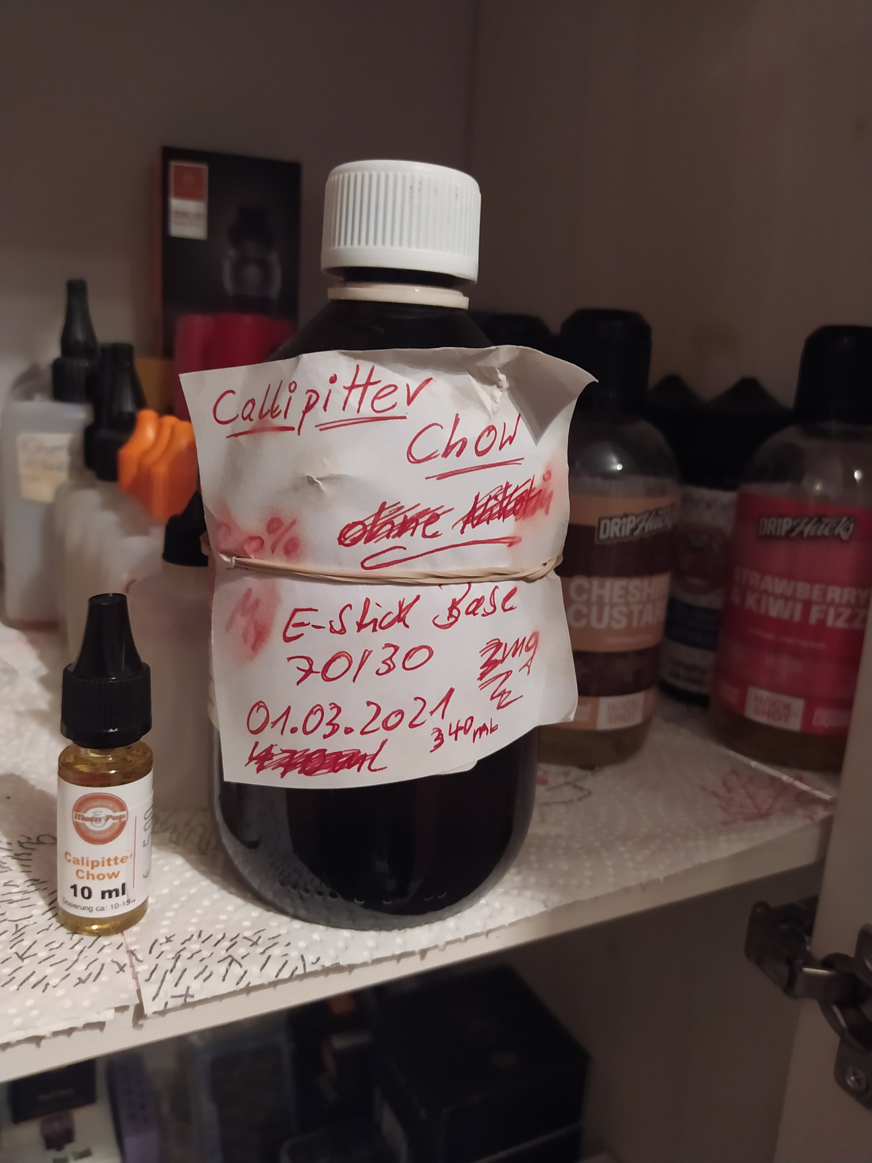 Hab ich früher mit Calipitter Chow von Mom &Pop auch so gemacht.300-440ml mit 20-25% angemischt und 4-6 Wochen reifen lassen. Dann haben die irgendwann das Rezept geändert und ich mochte es nicht mehr. Für mich war das eine Katastrophe da ich fast ausschließlich das Zeug gedampft habe. Ich hab sogar noch was davon hier...steht seid längeren hier im Schrank😬