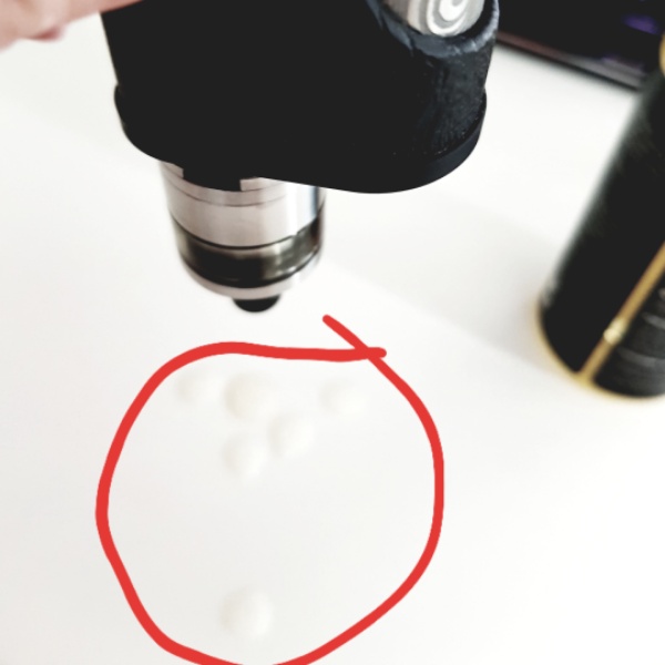 Dann habe ich aber festgestellt, dass sich die Topcap nicht mehr aufschrauben ließ. Aber warum nicht? Ursache war die Brennkammer aus Peek die, kaum erkennbar, leicht schief auf der Base saß. Aber warum? Ich brauchte einen Moment um zu erkennen, dass ich die 2mm AF-Düse falsch herum eingeschraubt habe. Die Schraube schaute einfach zu weit raus und somit das Peek nicht mehr richtig auf die Base.