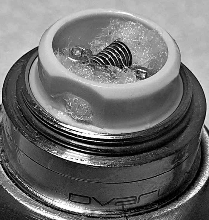 Nö, das ist der Bauart geschuldet. Besser würde es mit drei Händen. Aber so lange man den AT für die Befüllung des Zwergs abstellen muss, so lange läuft auch Liquid am Peek-Inlay herunter: