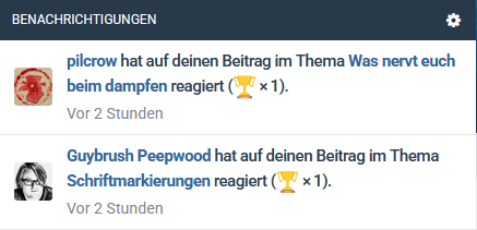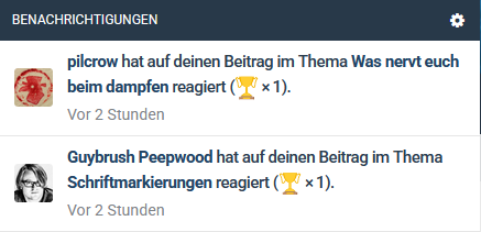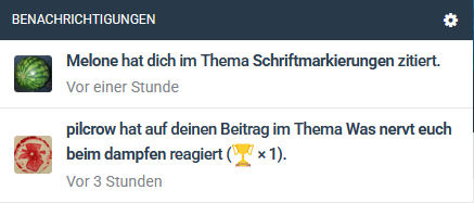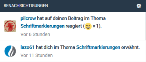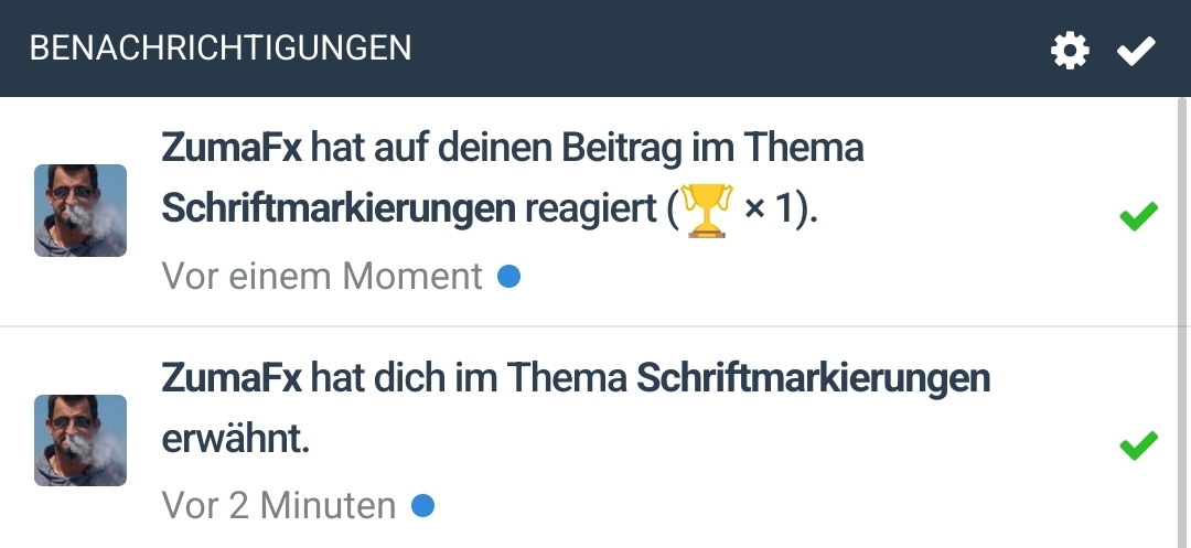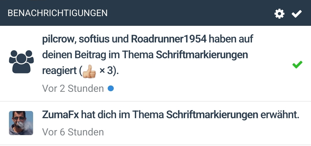 Ich schaue ja sehr oft über die Benachrichtigungen ins Forum, was da so los ist. Dabei stört mich schon länger, wie die Textmarkierungen bei der Nutzung eines Handys gestaltet sind. Während auf dem Desktop der gesamte Text in einer Benachrichtigung fett markiert ist, wird auf dem Handy diese in normaler und fetter Schrift Text hervorgehoben. Leider sehr ungünstig die "unwichtigen" Textteile in fett und die wichtigeren in normaler Schrift. Das erschwert doch zielich das Lesen auf dem Handy.