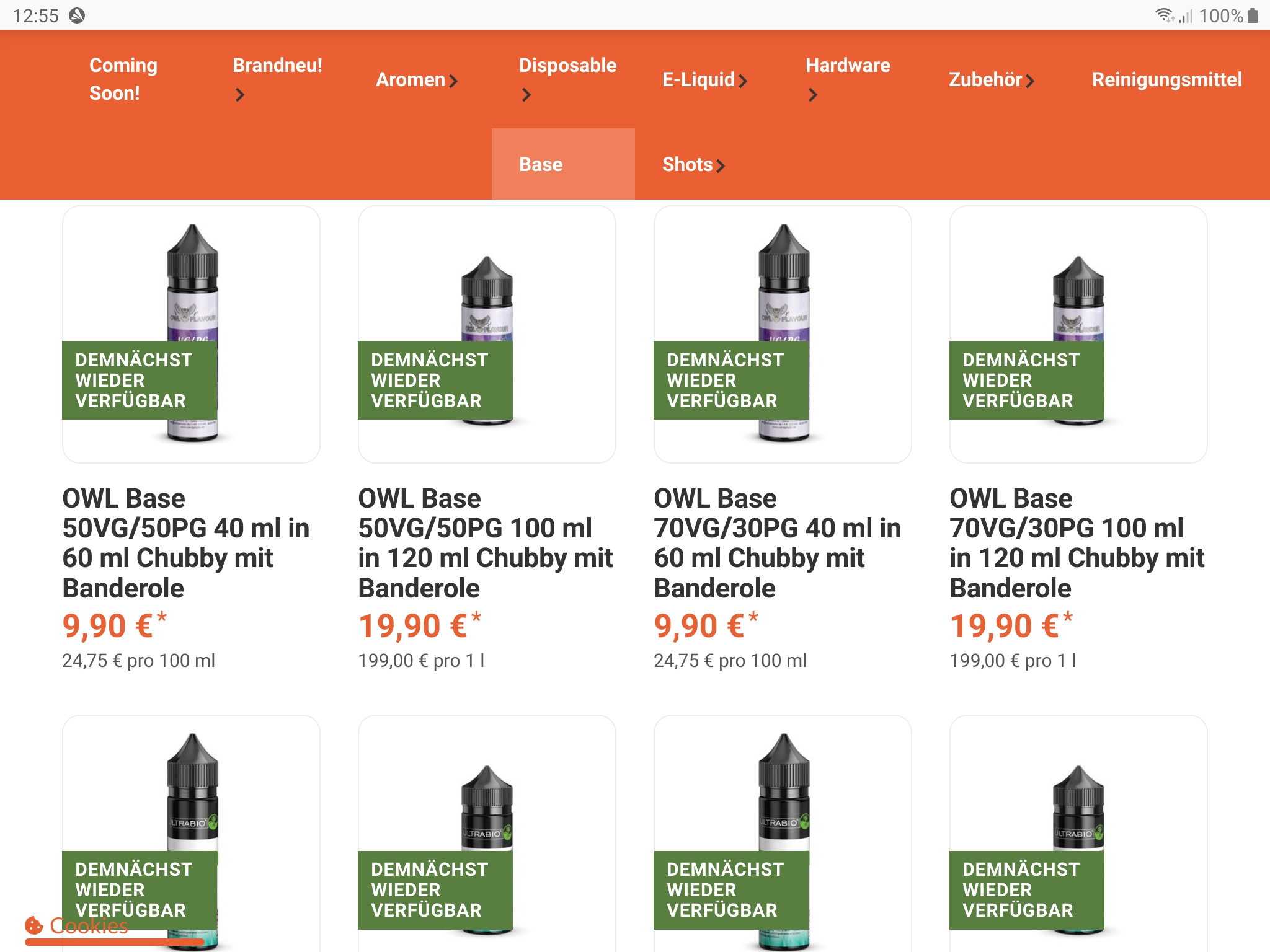 Muss wohl - 80 ct netto für 100 ml Base inkl. Flasche erschienen schon sehr günstig. (Also günstig wenn man die Steuern außen vor lässt...)