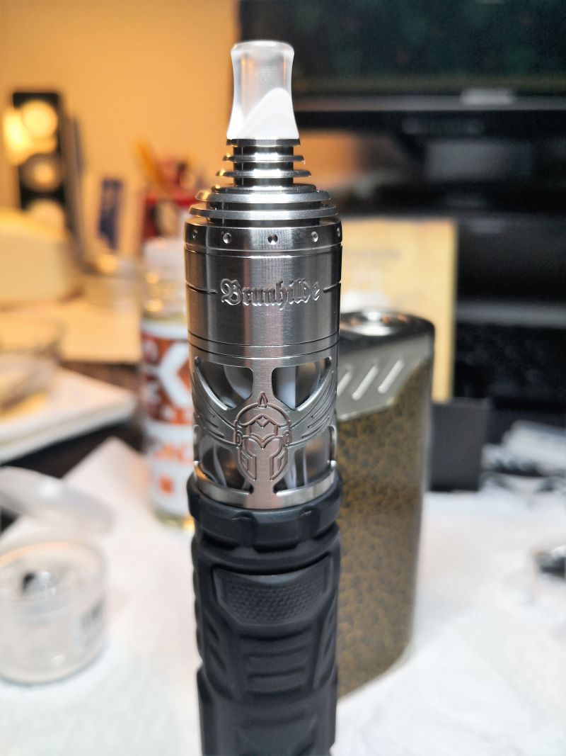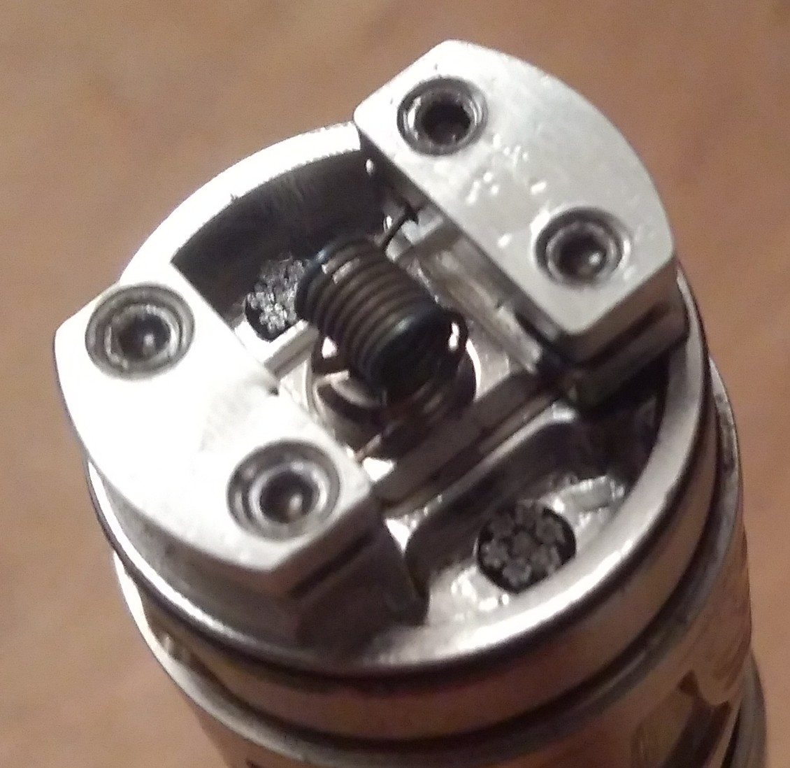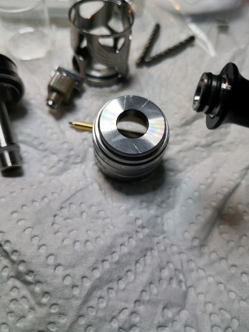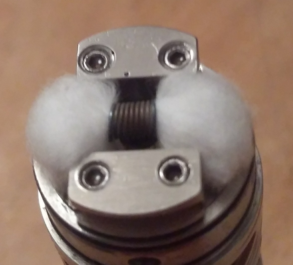 Mein Setup, 2,5mm Airflowschraube, 0,85 Ohm Edelstahl Runddraht 2,5mm Durchmesser mit 20 Watt.