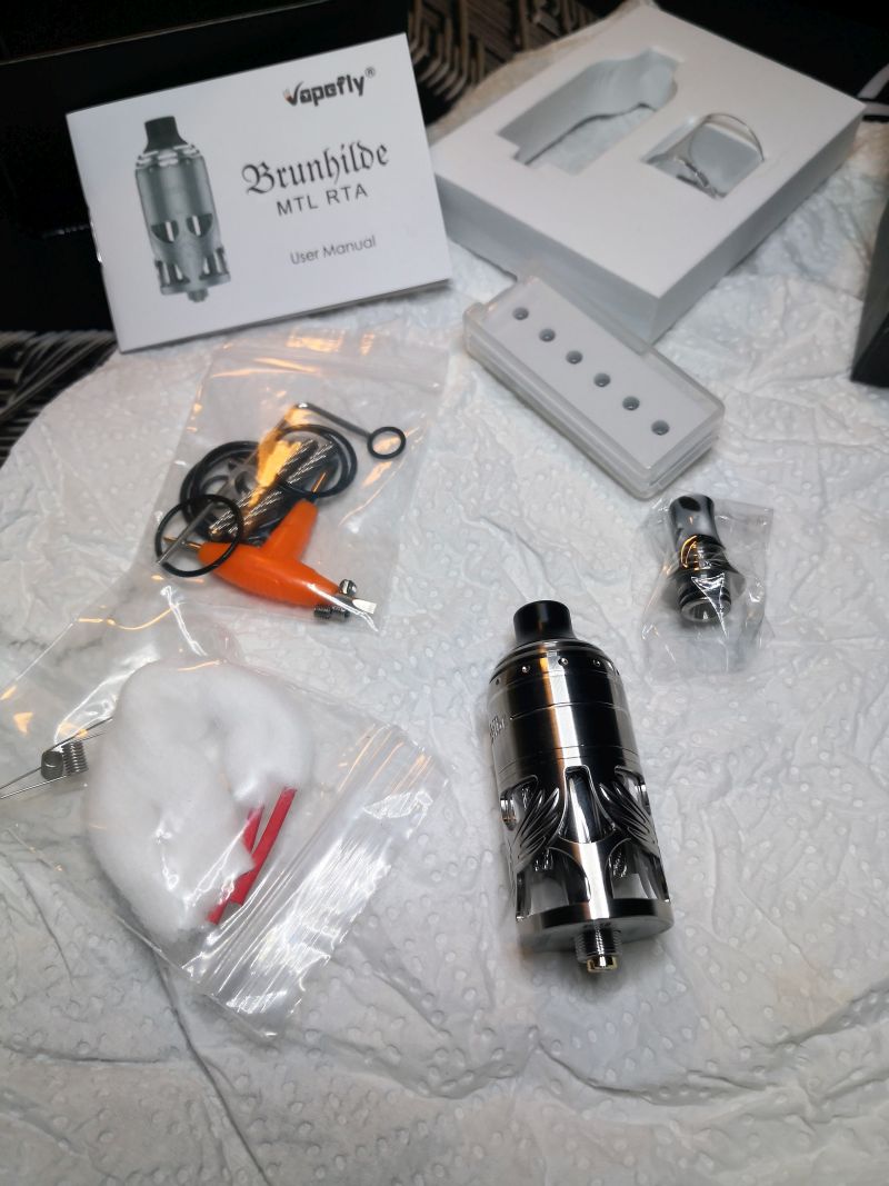 Desweiteren 2 Ersatzdochte, Ersatzdichtungen, Ersatztank, 2 Tripptips und Schrauben, sowie 2 Ni Coils 1 Ohm 2,5mm und 2 x Firebolt Schnürsenkel Watte.