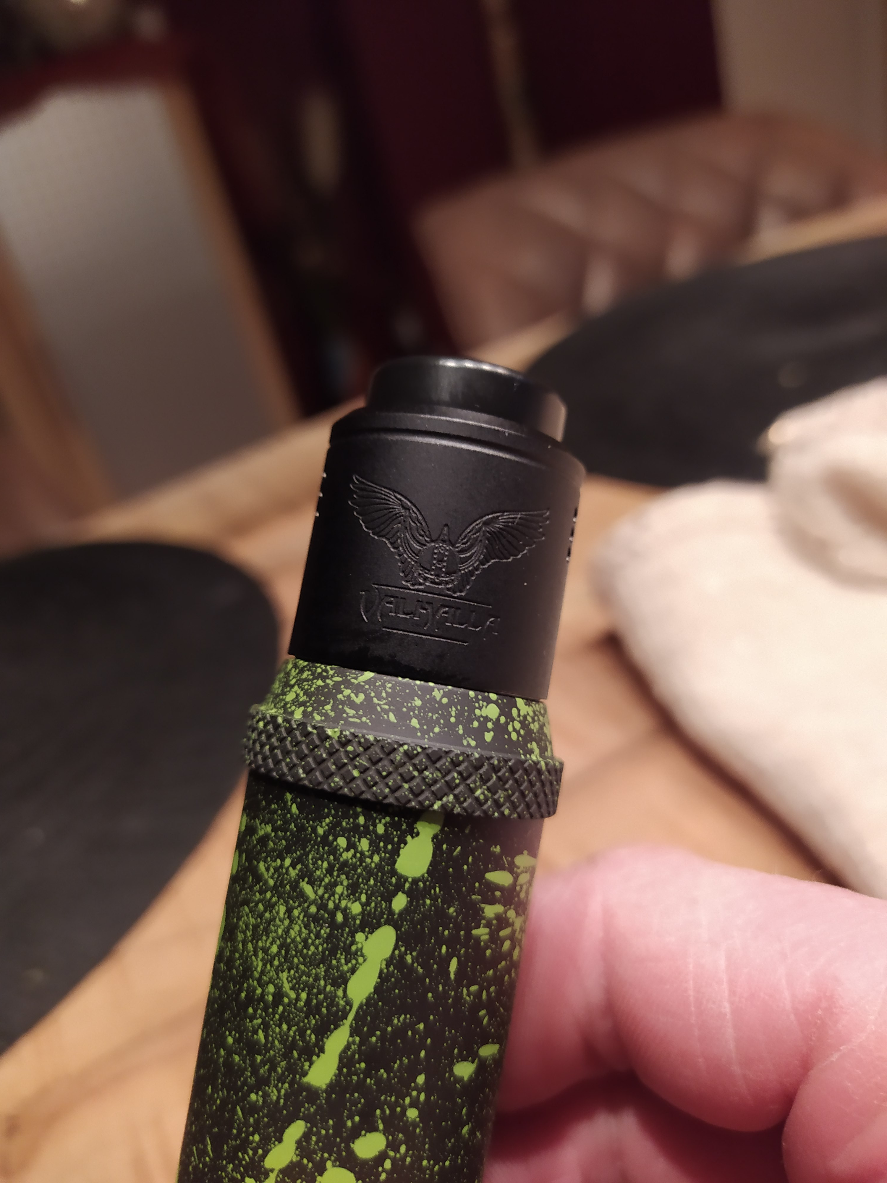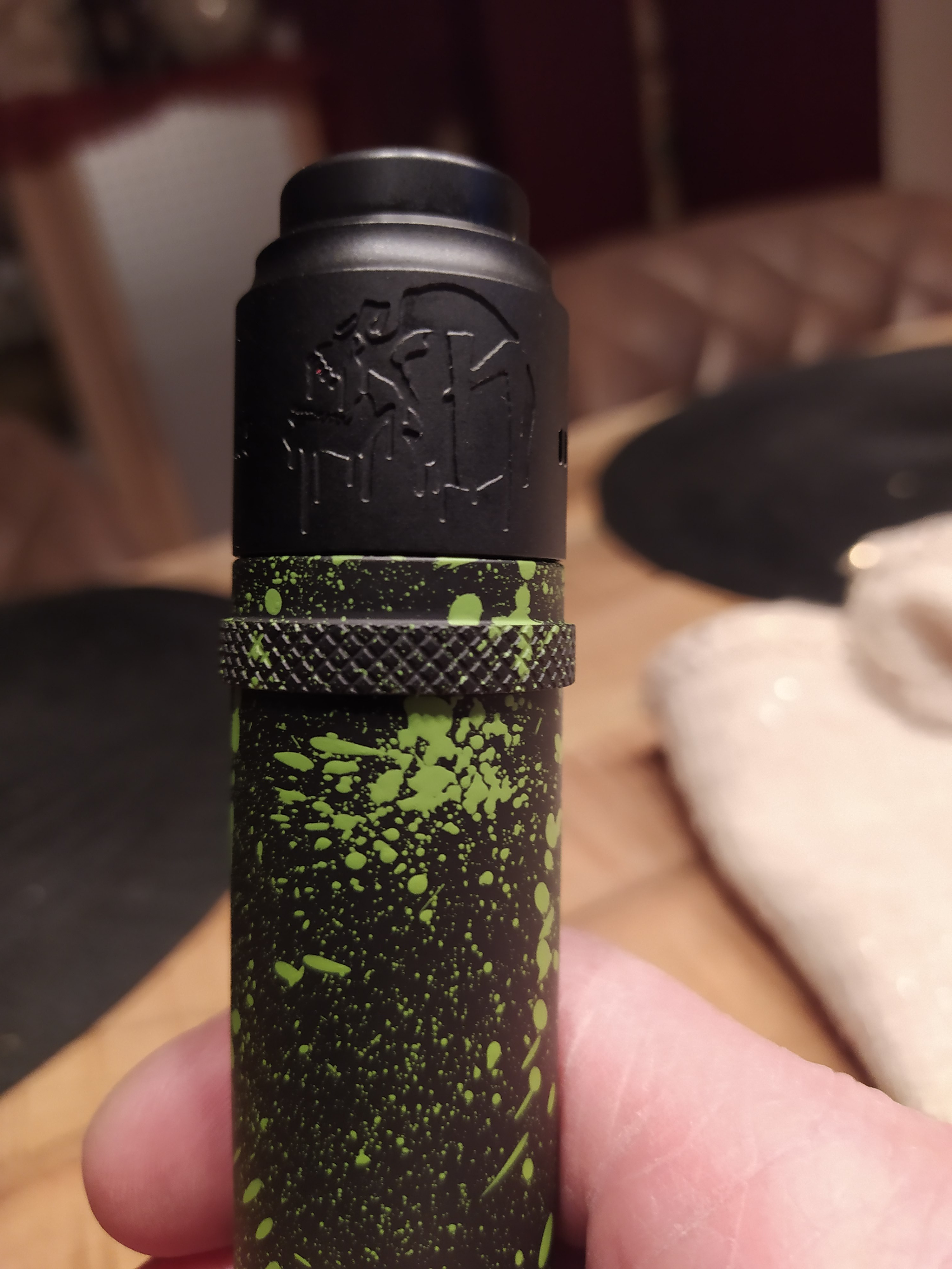 Alles gesamt gesehen bin ich mehr als zufrieden. Die Kombi mit den 28er Nightmare passt wie die Faust aufs Auge und ich überlege ob mir ein professioneller Lackierer evtl. die gleichen grünen Spritzer auf den rda zaubern könnte.