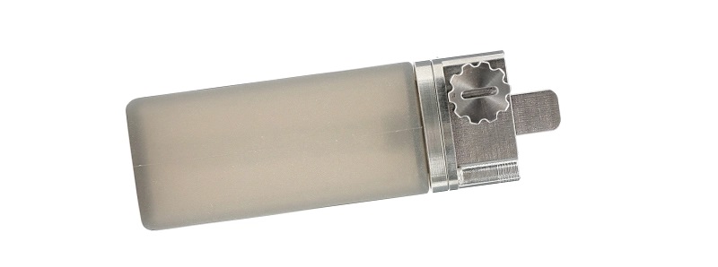 - Verwendung einer 21700er Batterie, wo oben mit einer Rädchen-Schraube der Minuspol eingestellt werden kann, so dass der Akku prima fest sitzt und nichts rappelt.