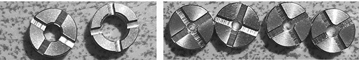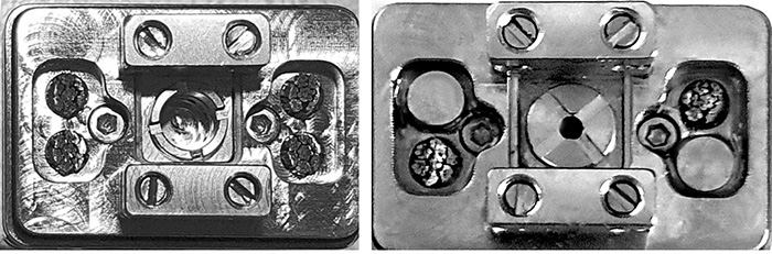 LINKS: das Deck mit 4 Seilen mit dem 4 mm DL- Air-Pin - und RECHTS: das Deck mit nur 2 Seilen samt der Stopfenverschlüsse und meinem 1,5 mm Air-Pin für eine strengere MTL- Luftführung, der einfach in der Mitte der Wicklung eingeschraubt wird. (Mittlerweile steckt hier jetzt ein 1,2 mm Pin drin!)