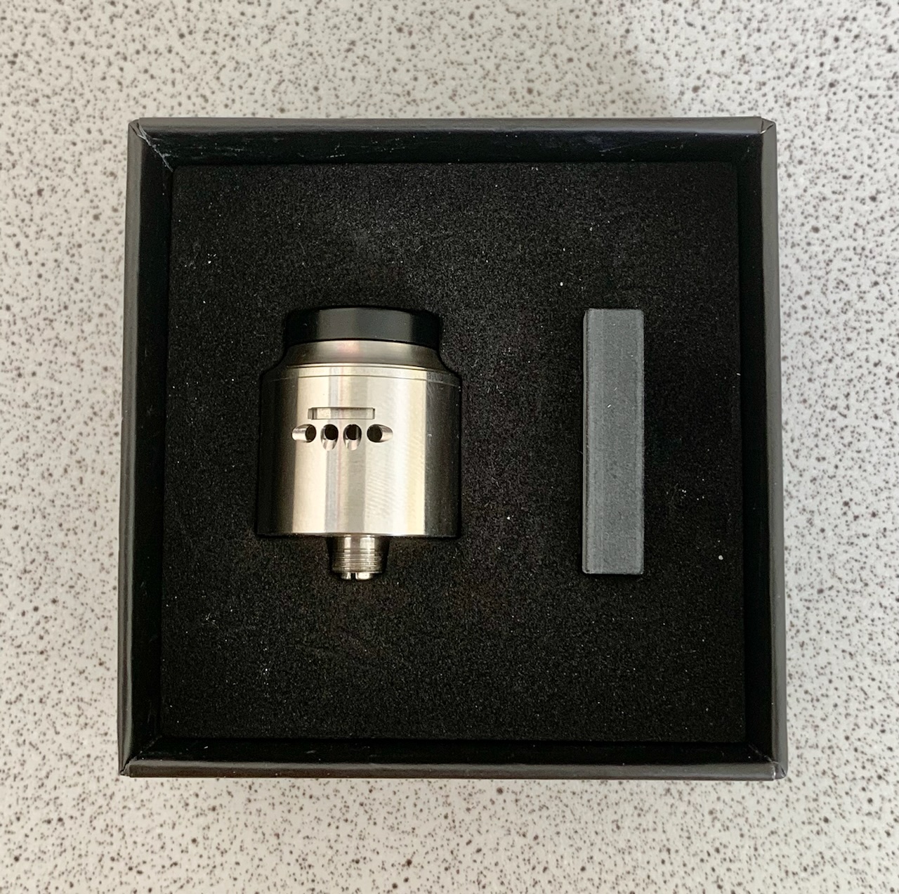 Die Topcap ist ziemlich massiv/dickwandig und regelt die Airflow in 3 möglichen Einstellungen.