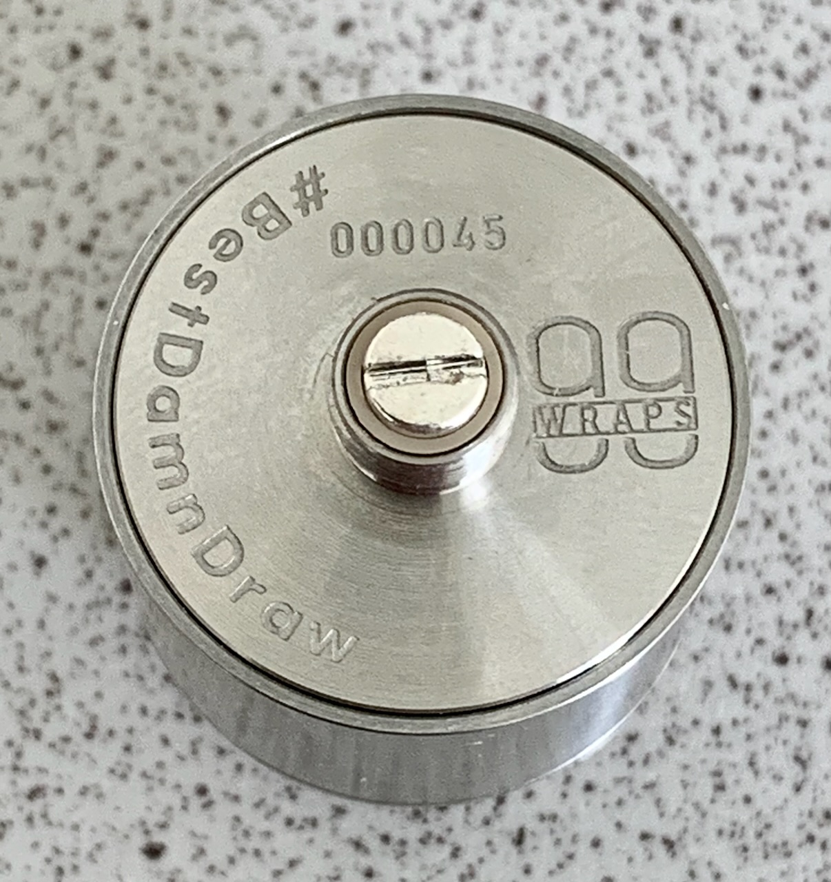Auf der Unterseite gibt es Logo, Seriennummer und den „best damn draw“ Spruch.