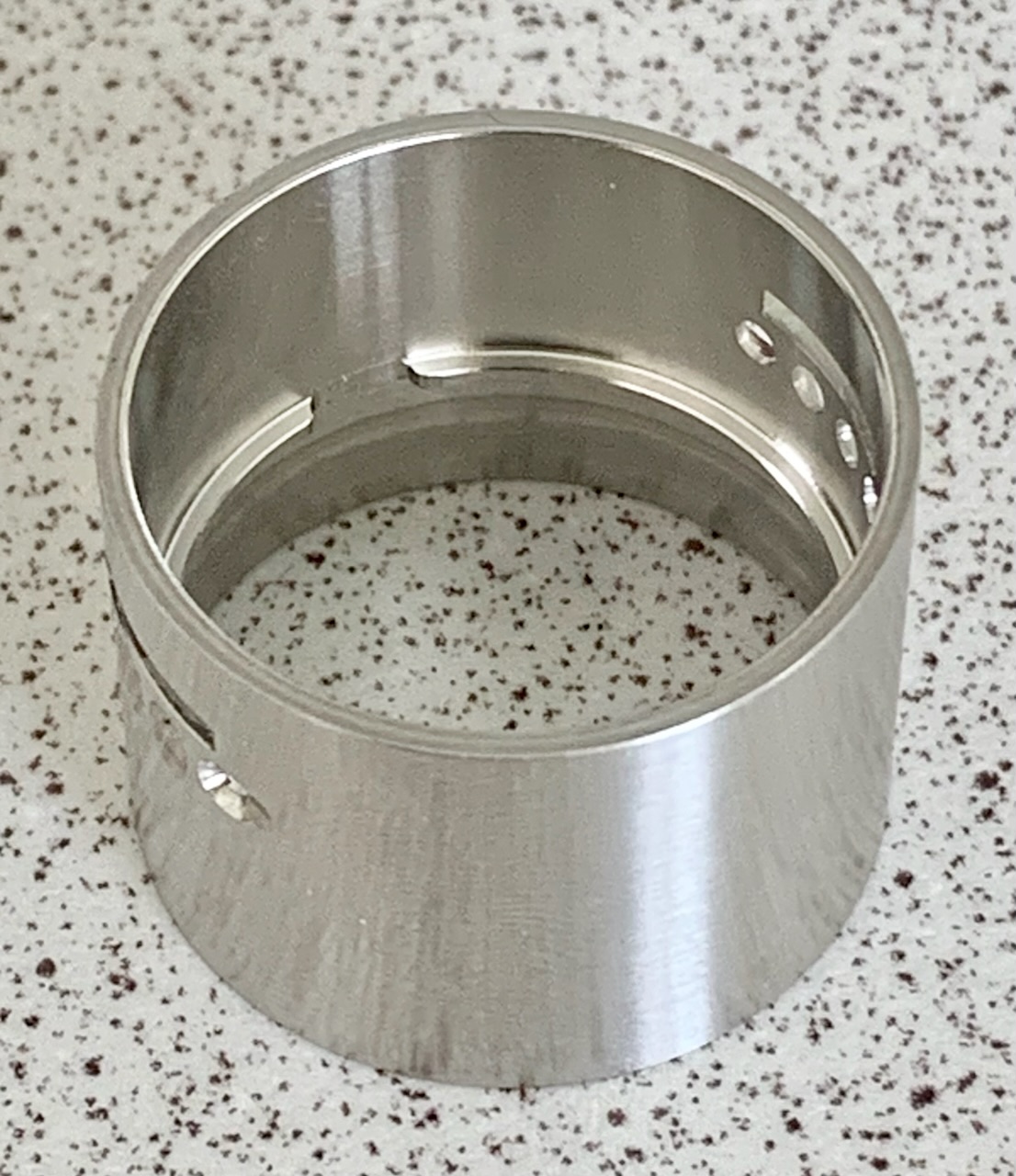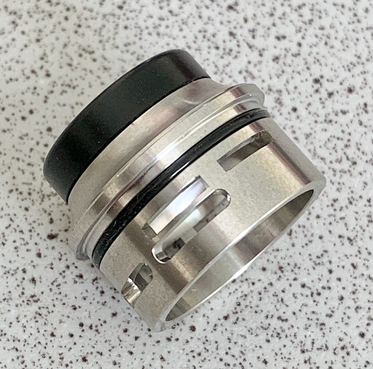 Der Ring innen im Mittelteil dient als Anschlag für Base und Topcap. Die Unterbrechung schützt gegen Verdrehen, wenn er auf die Base gesteckt ist.