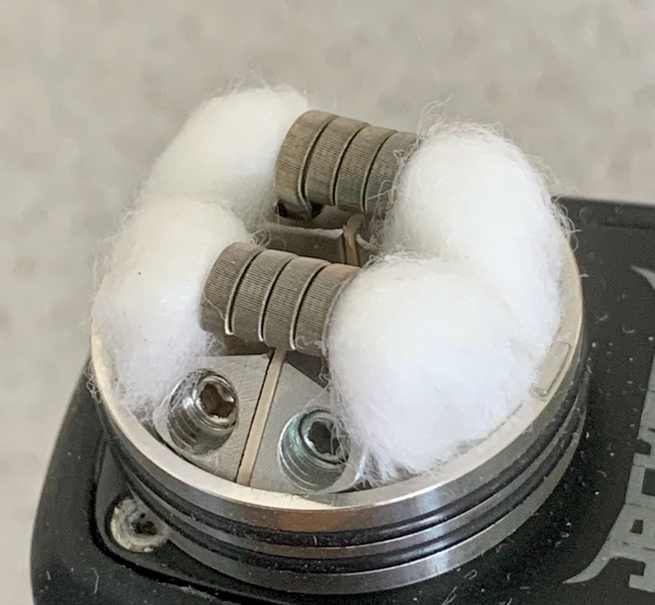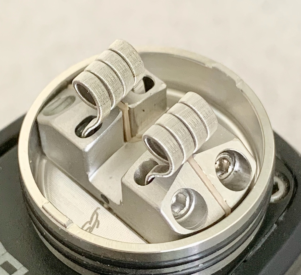Bei Bewatten hab ich einen kleinen Kanal modelliert, damit das Liquid nach dem dröpseln schneller in die Wattetaschen abfließt und aufgesaugt wird.