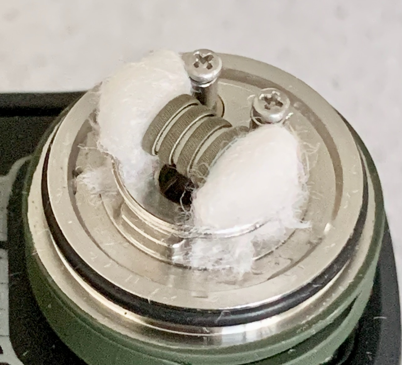 Beim Wickeln muss man etwas mit der Watteverlegung achtgeben, dass man nicht zu nah an die Airflow kommt. Da ist wirklich nicht viel Platz. Ich hab die Watte im feuchten Zustand entsprechend modelliert.