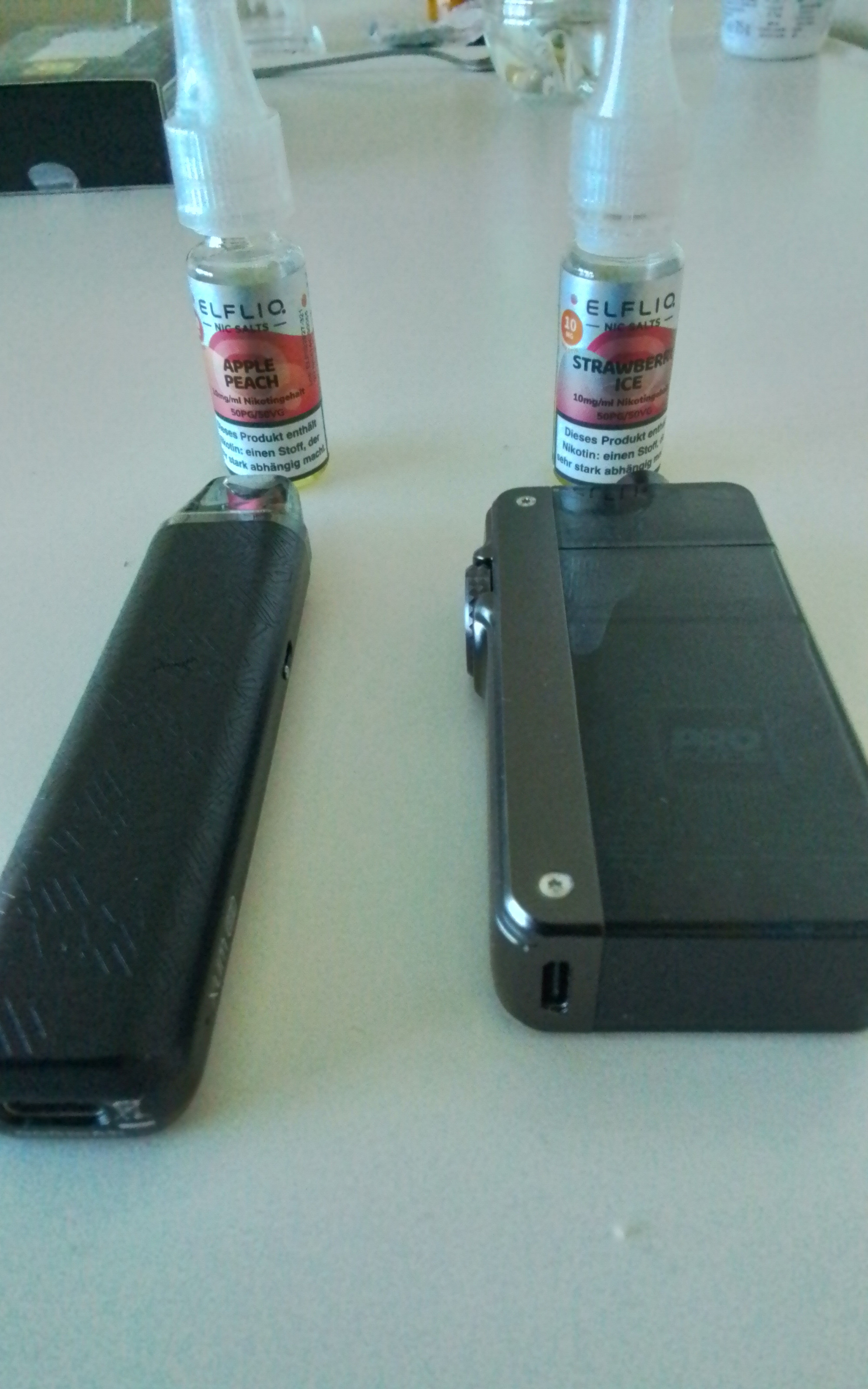 Befüllt sind beide mit ELFLIQ und 10 mg Nic-Salt.