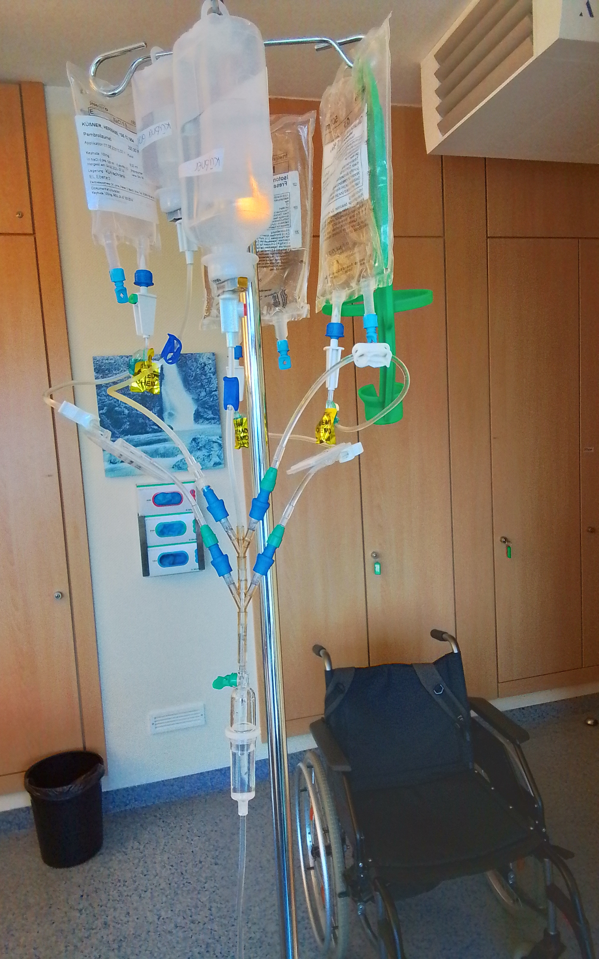 11 Stunden habe ich ohne Unterbrechung an diesem Scheixx-Infusionstsänder gehangen.