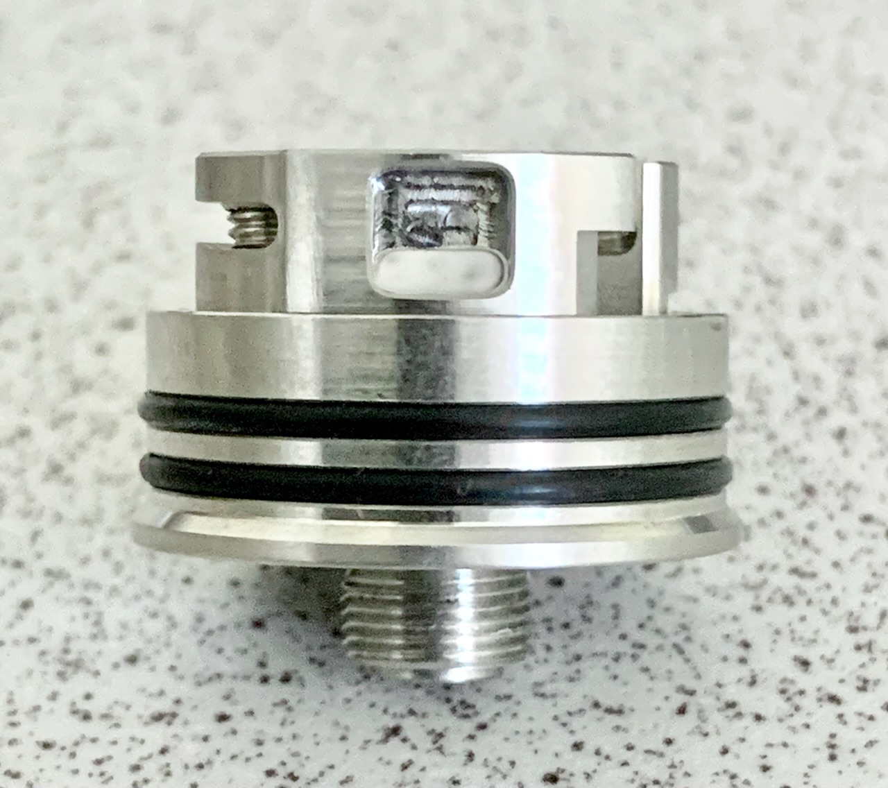 Mit der kleinen Madenschraube lässt sich der Squonkpin verschließen.