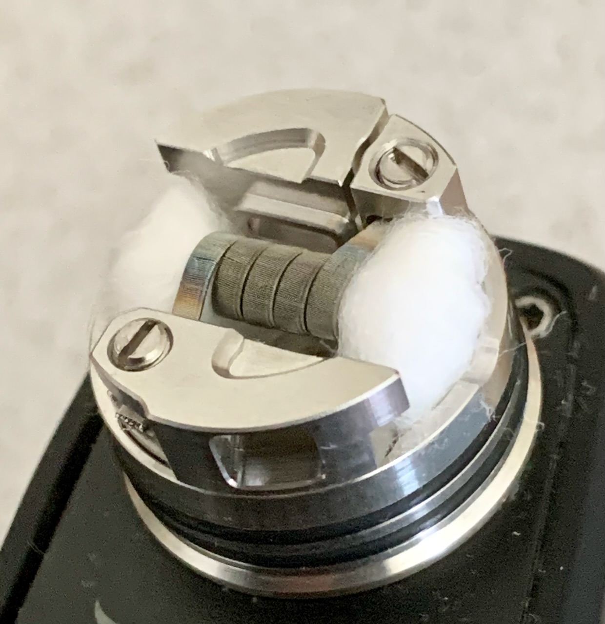 Die Coil hab ich etwas höher positioniert als die Wickelauflage vorgeben würde. So trifft die Luft auf die untere Hälfte der Coil. Schmeckt mir besser.