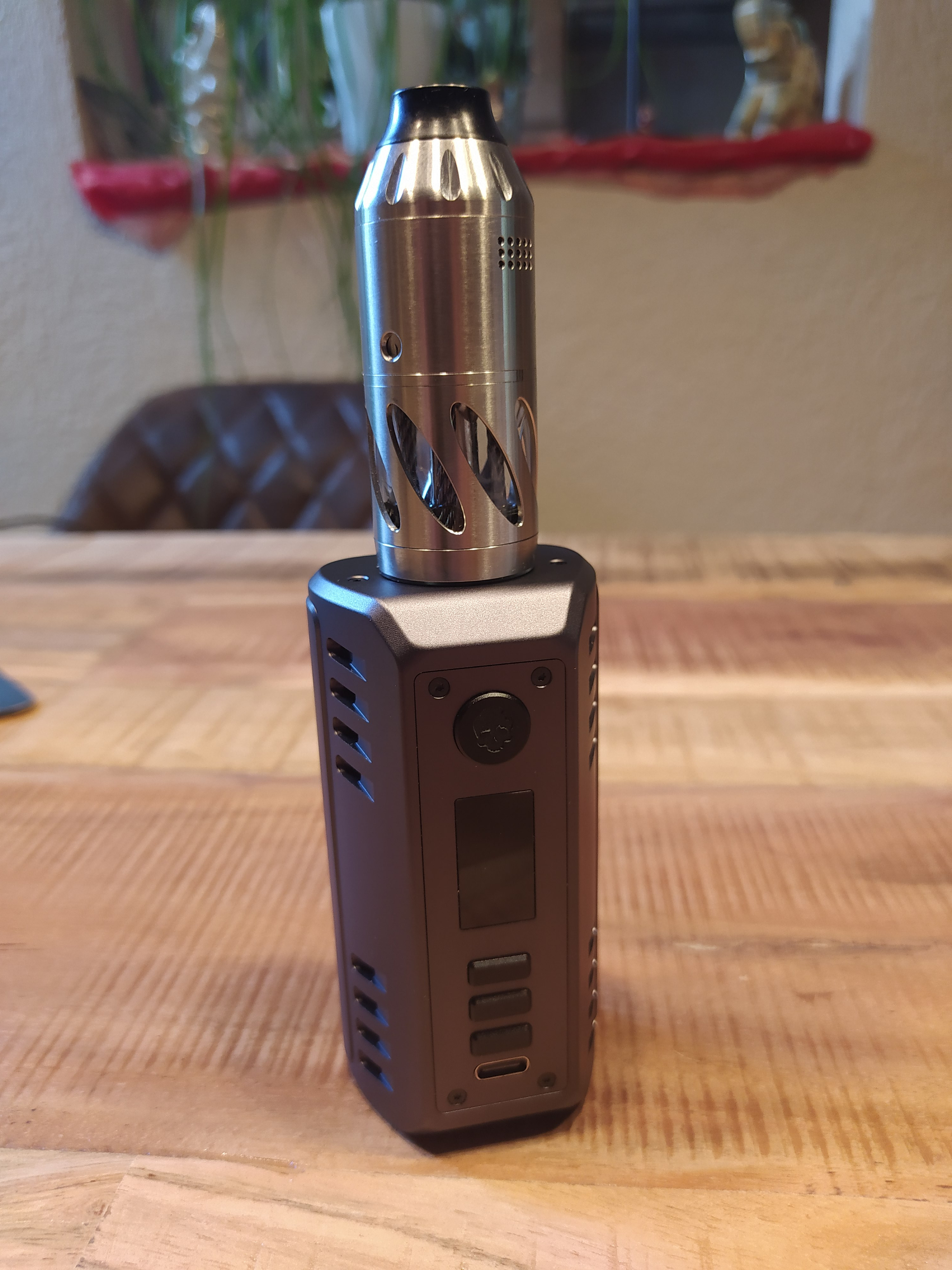 Beim Dampfen merkt man es nicht da der Deckel mit den Mod ja festgehalten wird. Aber läßt man den Odin in der Hand spielen merkt man deutlich den wackeligen Deckel. Die zwei Magnete halten ihn zwar aber auch nicht bombenfest. Bei stärkeren Handbewegungen hat sich sogar der Mod vom Deckel gelöst und ist runtergefallen.