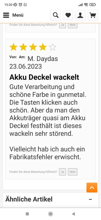 Nachdem ich die Akkus eingelegt habe kam aber schnell die Ernüchterung.