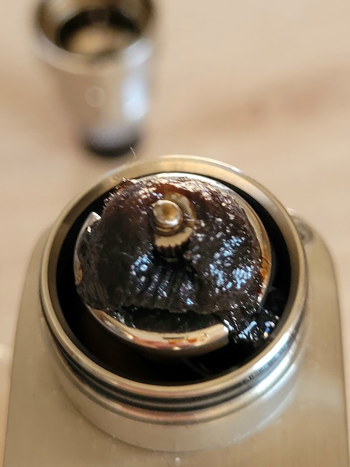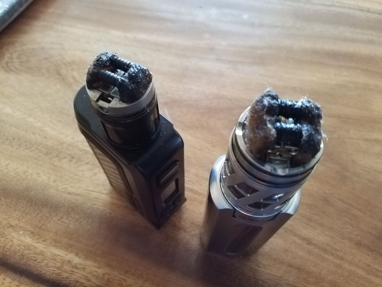 Ca. 8ml Fascination und die Krustenbildung nimmt ihren Anfang. Geschmacklich auch zu merken, also täglich neu wickeln. Im Fatality M30 hält Watte und Wicklung bei vergleichbarer Leistung mit dem Liquid länger, aber da ist ja auch mehr Luft in der Kammer.