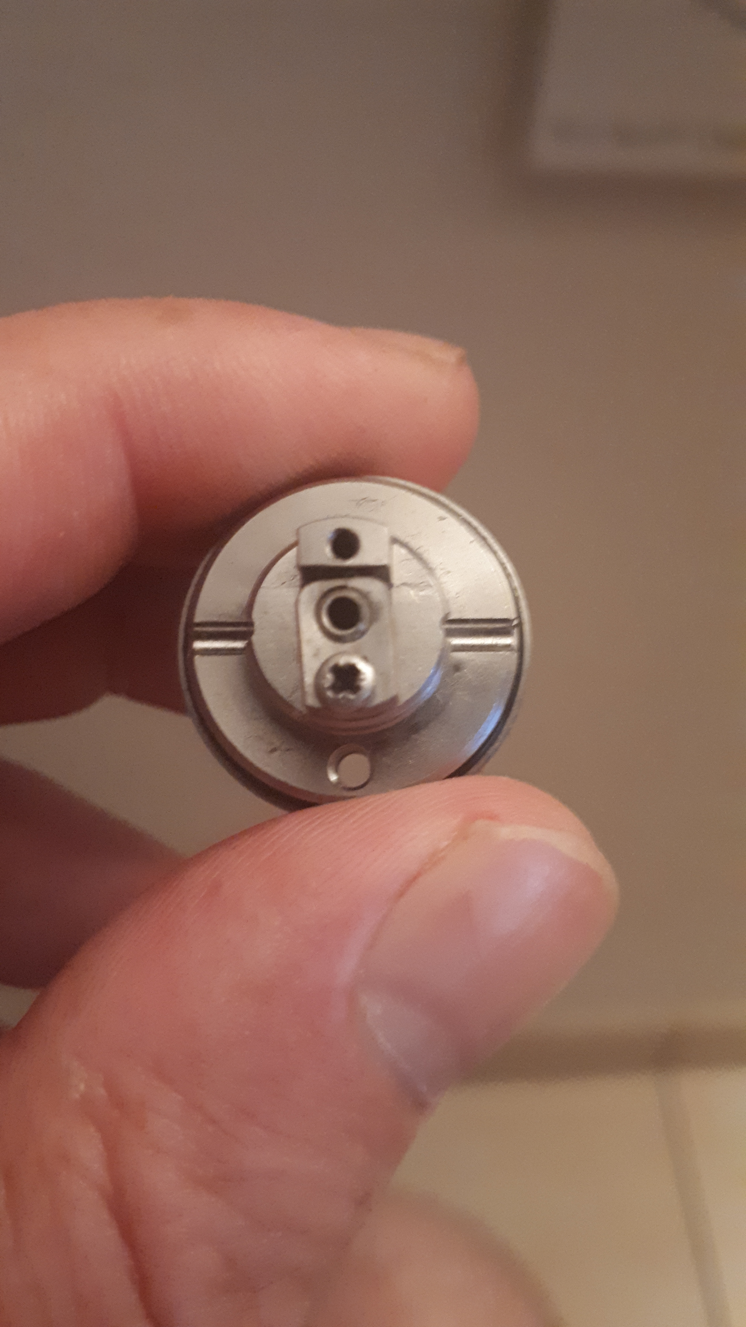 Habe von einem jede Menge Verdampfer bekommen, weil er nicht mehr Dampfen möchte. Hier und da sind keine Gläser mehr dabei oder zerbrochen. Von allen habe ich rausgefunden um was es sich handeln, nur bei einem stoße ich auf meine Grenzen. Habe das Deck mal fotograviert und die Unterseite des Decks. Es handelt sich um alle Verdampfer um Clone auch diesr hier nehme ich mal an. Bitte helft mir. Und ja ich weiß das oben wie unten Schrauben fehlen, aber das stellt kein Problem da.