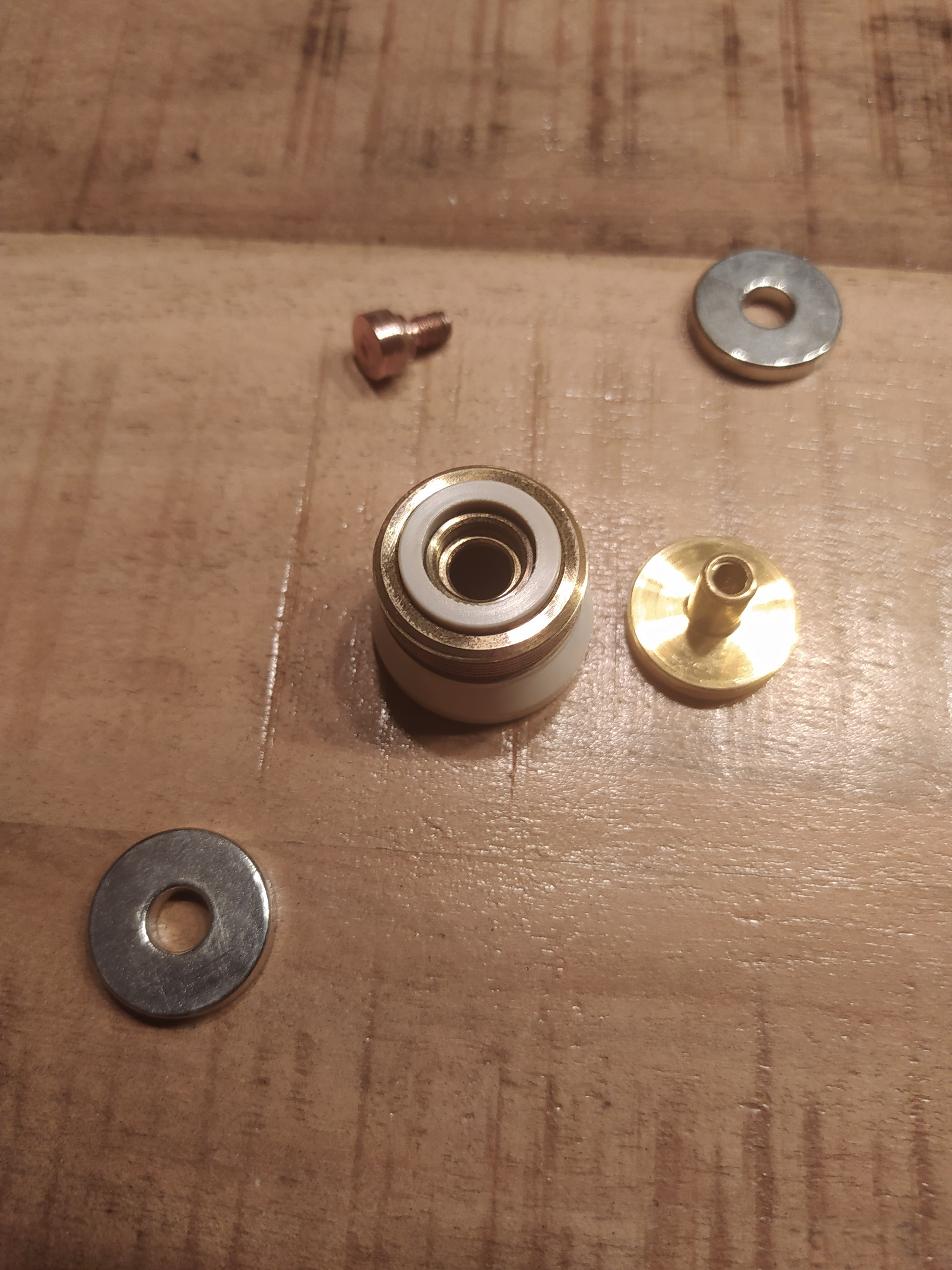 Der Kupferpin läßt sich optional gegen einen Silberpin tauschen. Der Tastenhub ist stramm.Strammer als bei jeder anderen Röhre die ich habe und relativ kurz. Das läßt sich auch nicht einstellen aber auch hier bietet Comp Lyfe Möglichkeiten . Wer zuviel Geld hat kann hier auch einen anderen Taster aus Titan in lang oder kurz, mit kurzen noch kürzeren oder fast gar keinen Hub mit der Tube kombinieren. Die Gewinde sind fein und suuuuper leichtgängig. Das ganze macht einen sehr wertigen Eindruck.