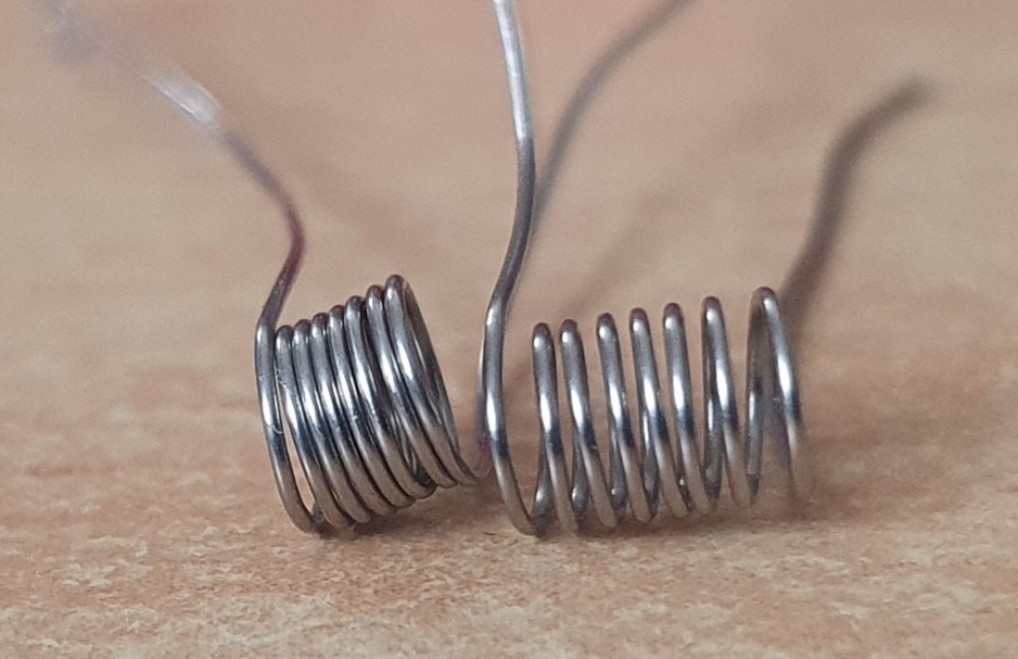 Runddraht ist die einfachste Form einer Coil, bei der ein Draht in gewünschter Stärke zu einer Spule gewickelt wird. Sehr einfach herzustellen und als "micro" (Windungen sind sehr eng aneinander) sowie als "spaced" zu bauen. Wird am meisten im MtL-Bereich verwendet, kann aber auch bei DL verwendet werden.