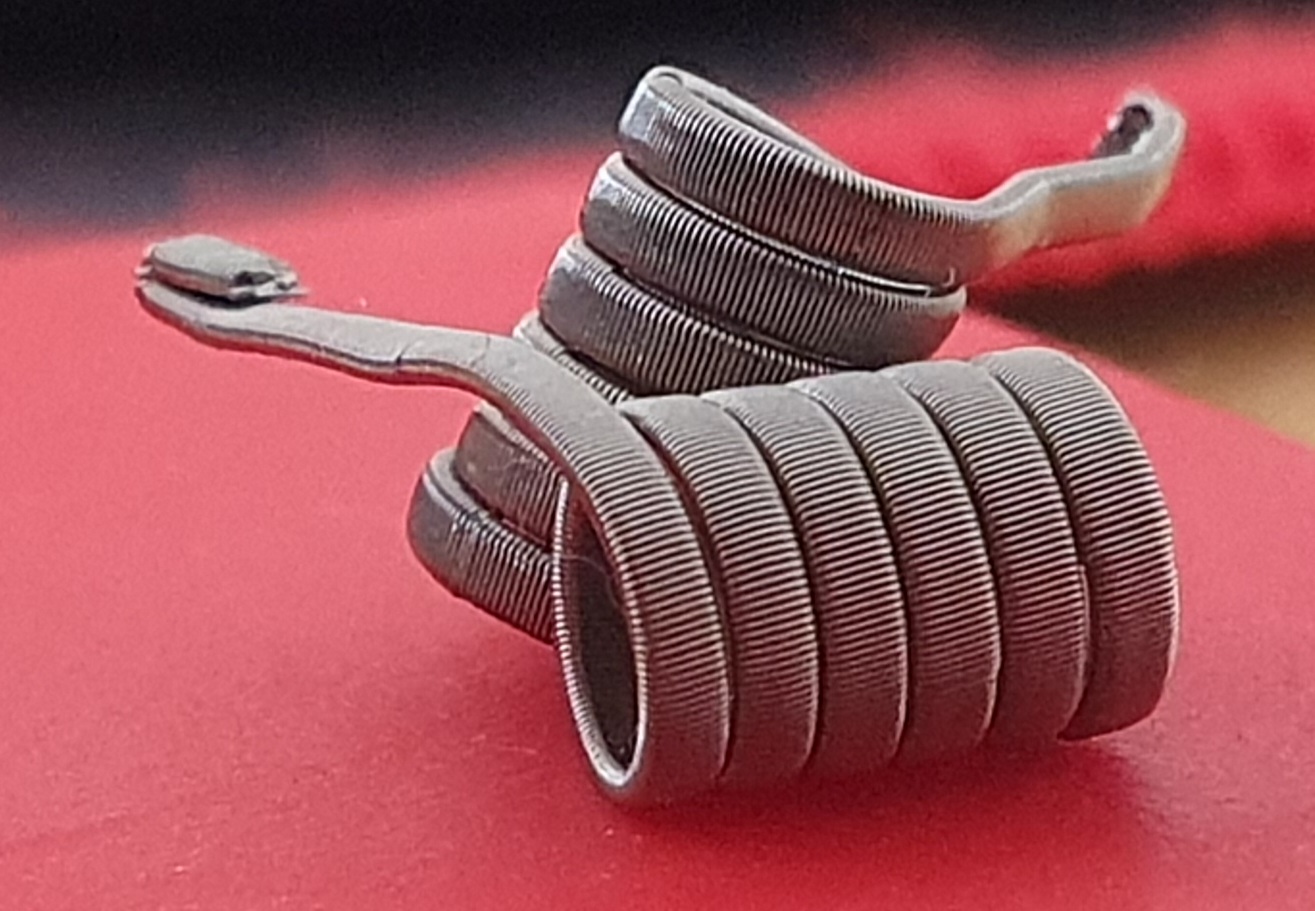 Eine Clapton besteht ebenfalls aus einem Runddraht, der jedoch mit einem dünneren Draht umwickelt ist (Motor nötig). Der Sinn liegt darin, die Oberfläche der Coil zu vergrößern, damit mehr Liquid verdampft wird sowie "Liquidtaschen" in den Zwischenräumen zu schaffen(was den Geschmack verstärkt). Auch hier wird das für MtL sowie seltener bei DL verwendet. Es gibt noch diverse Unterarten, die im Grunde aber alle Claptons sind, als da wären