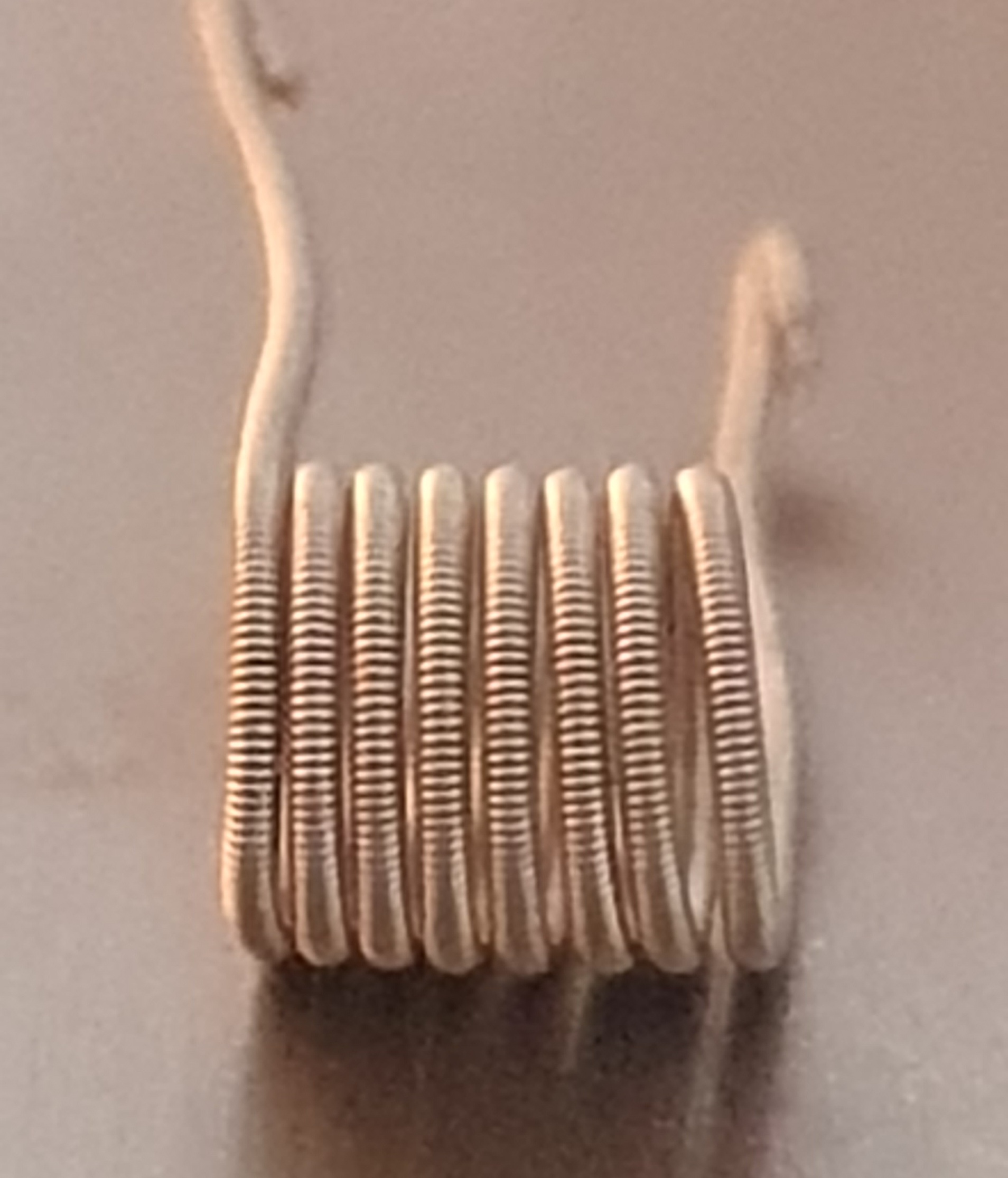 Besteht aus 2 oder mehr Claptondrähten, die mit einem Flachdraht umwickelt werden. Dies ergibt viele Zwischenräume und viel Oberfläche aber auch viel Masse, die erhitzt werden muss.