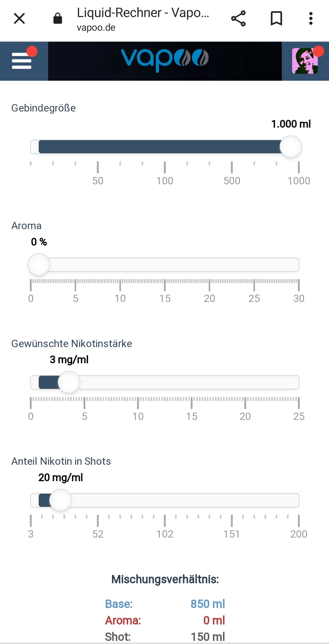 Da muss ich mal eben "einhaken", der Recher bei Dampfodrado ist nicht schlecht, aber man kann nicht angeben, welche Stärke die Shots haben. Gibt aber ja mit 18mg und 20mg welche, daher würde ich immer Liqcalc vorziehen
