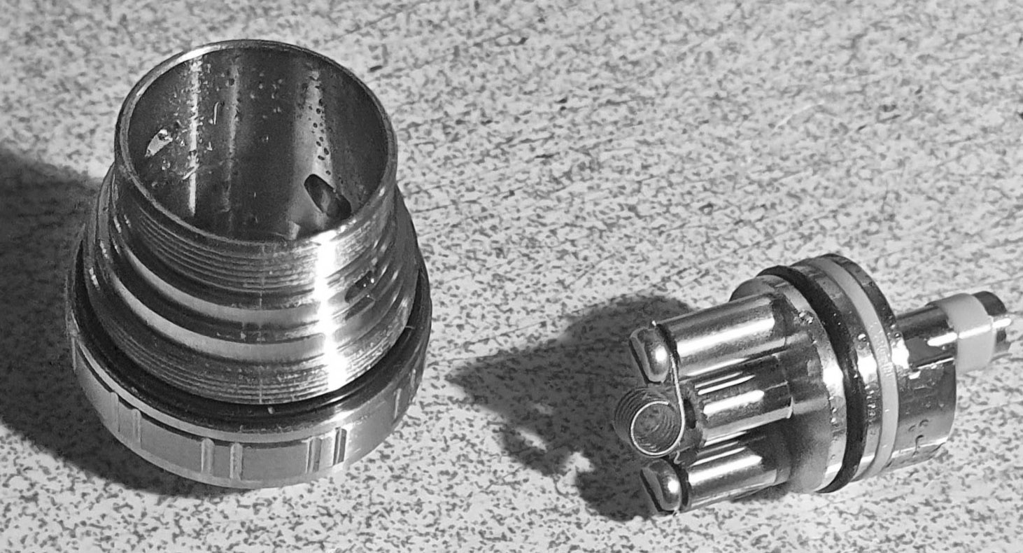 Das Plastik ist recht dünn und man muss beim Reinigen aufpassen, wenn man oben und unten die Zierringe aus Stahl abdrehen und später wieder aufschrauben will. (Sicherheitshalber habe ich mir gleich für € 8 ein Ersatztankgehäuse dazu bestellt!) Also Vorsicht: Plastikgewinde auf Stahlgewinde ist immer sehr heikel!
