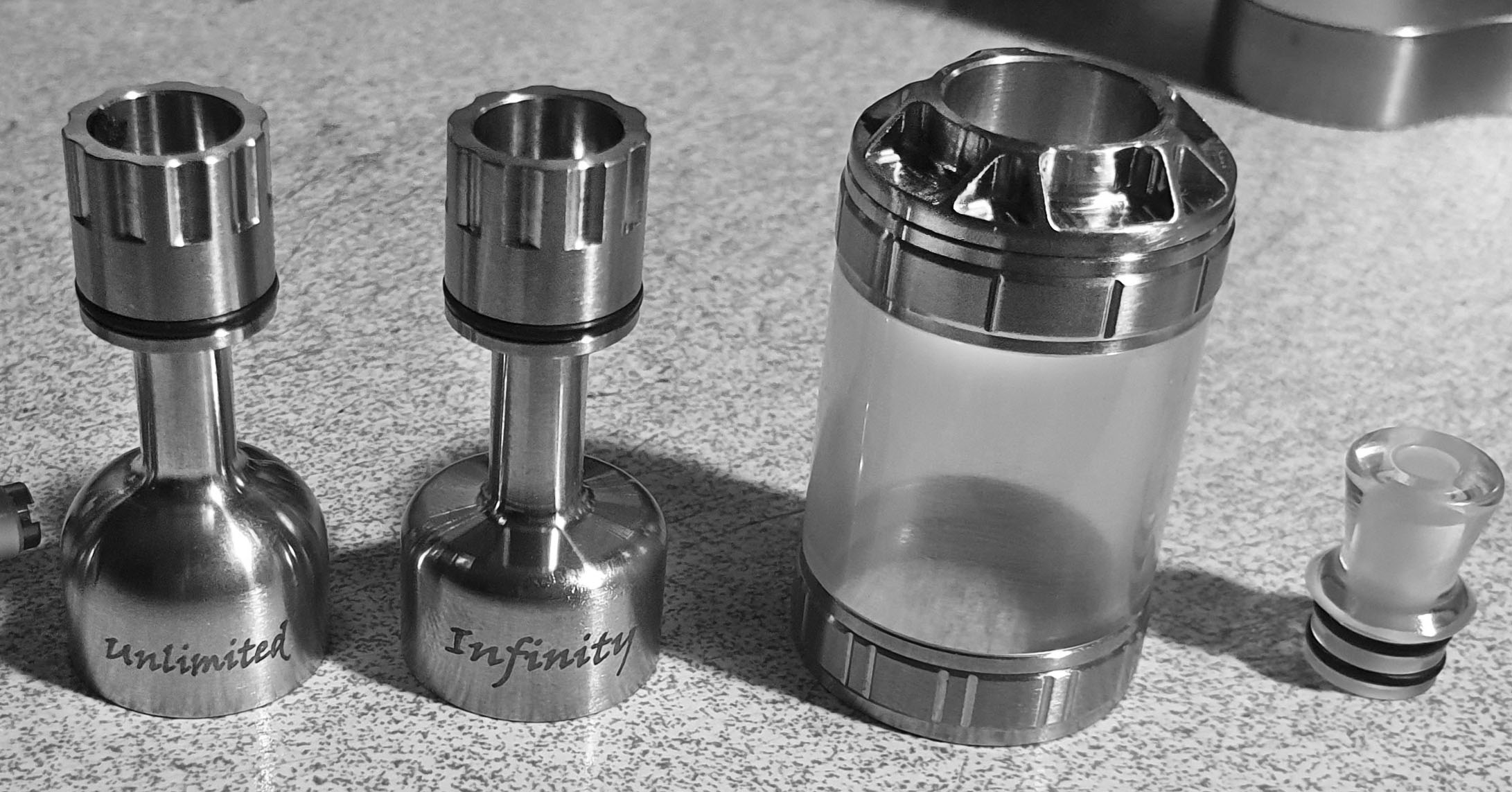 Der MooD wird mit zwei unterschiedlichen Glocken geliefert, der eckige Infinity und der abgerundete Unilimited: Da in Italien wohl vermehrt Tabakaromen beliebt sind, sind (laut aller italienischen Reviewer) beide Glocken perfekt für verschiedene Tabaksorten geeignet, sowohl Tabak pur, aber auch aromatisierte Mischungen.