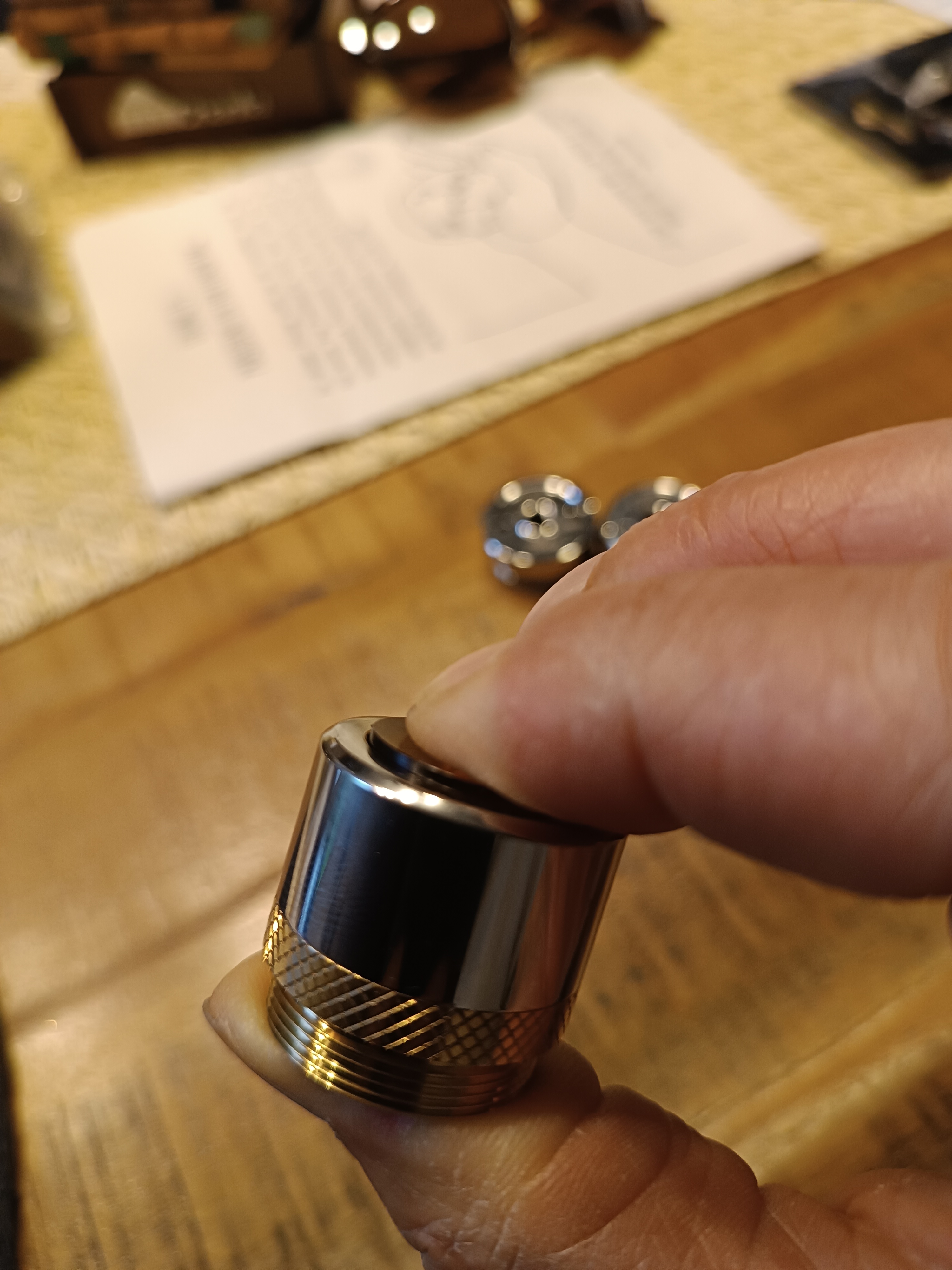 -Material ist Edelstahl, Messing und zwei mit Cerakote Beschichtung in Full Matt Black eine noch zusätzlich mit Messingring wie bei der Edelstahl Variante.