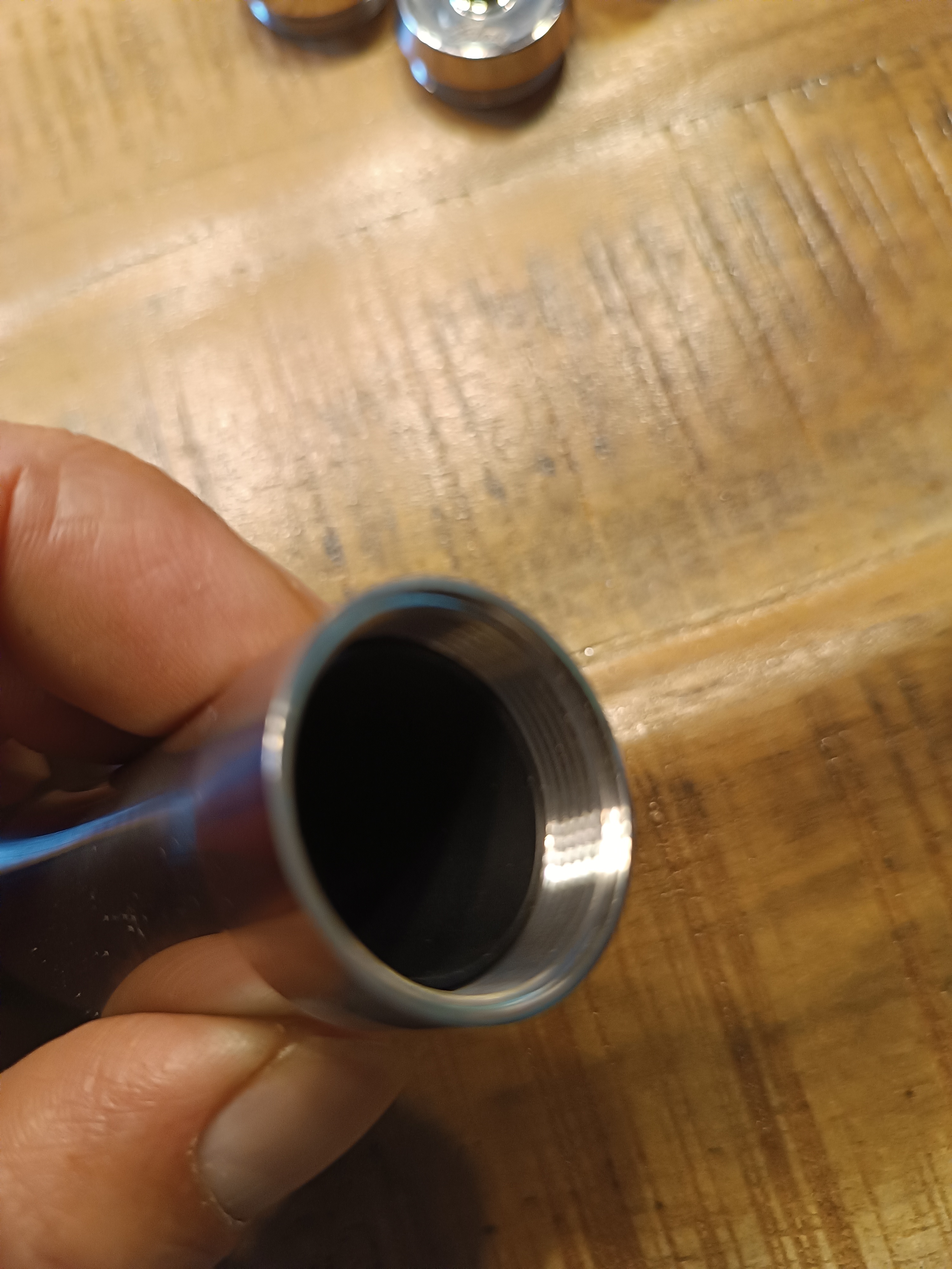 Um einen Accu einzulegen wird das Schaltergehäuse oberhalb vom Messingring abgedreht. Im inneren befindet sich eine Kunstoffrohre falls der Accuschlauch doch mal einen Riss hat ist man damit noch sicher.