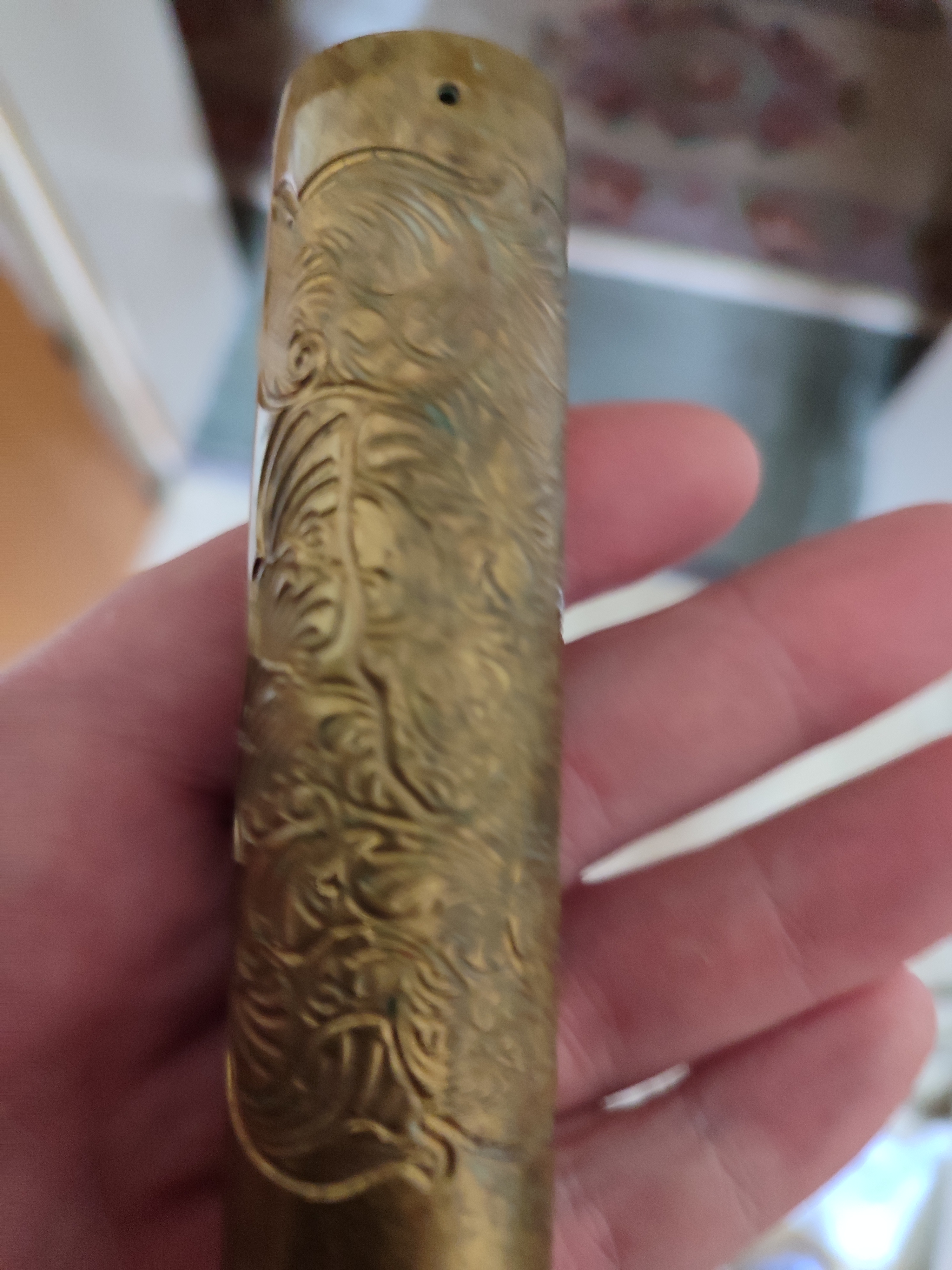 Total versifft. Messing. Er hat schon Grünspann. Keine Ahnung was der mit dem gemacht hat. Es könnte ein Purge Clone sein, sicher weiß ich es auch nicht.