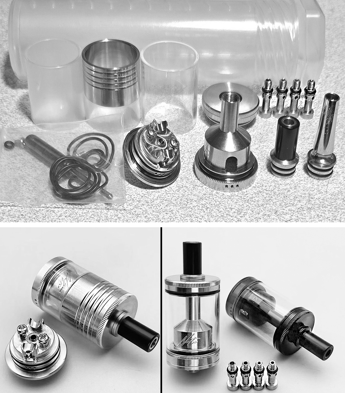 Ich nutze den Verdampfer zunächst sehr gerne mit dem mitgleieferten, klaren und voll sichtbaren Glastank. Der VD läßt sich problemlos wickeln, von oben befüllen und schmeckt überraschend gut, da auch die Verdampferkammer wohl MTL-gerecht klein genug ist, um eine gute Geschmacksentwicklung im Dampf zu entwickeln. Da wurde ich gleich von Anfang an positiv überrascht. Das Handling dieses VDs ist auch so einfach, dass man es problemlos vielen Anfängern empfehlen kann, zumal auch die Preishöhe dieses Clones verlockend gering ist bzw. man mit dem Erwerb des NETSU MTL RTA nichts falsch machen kann.