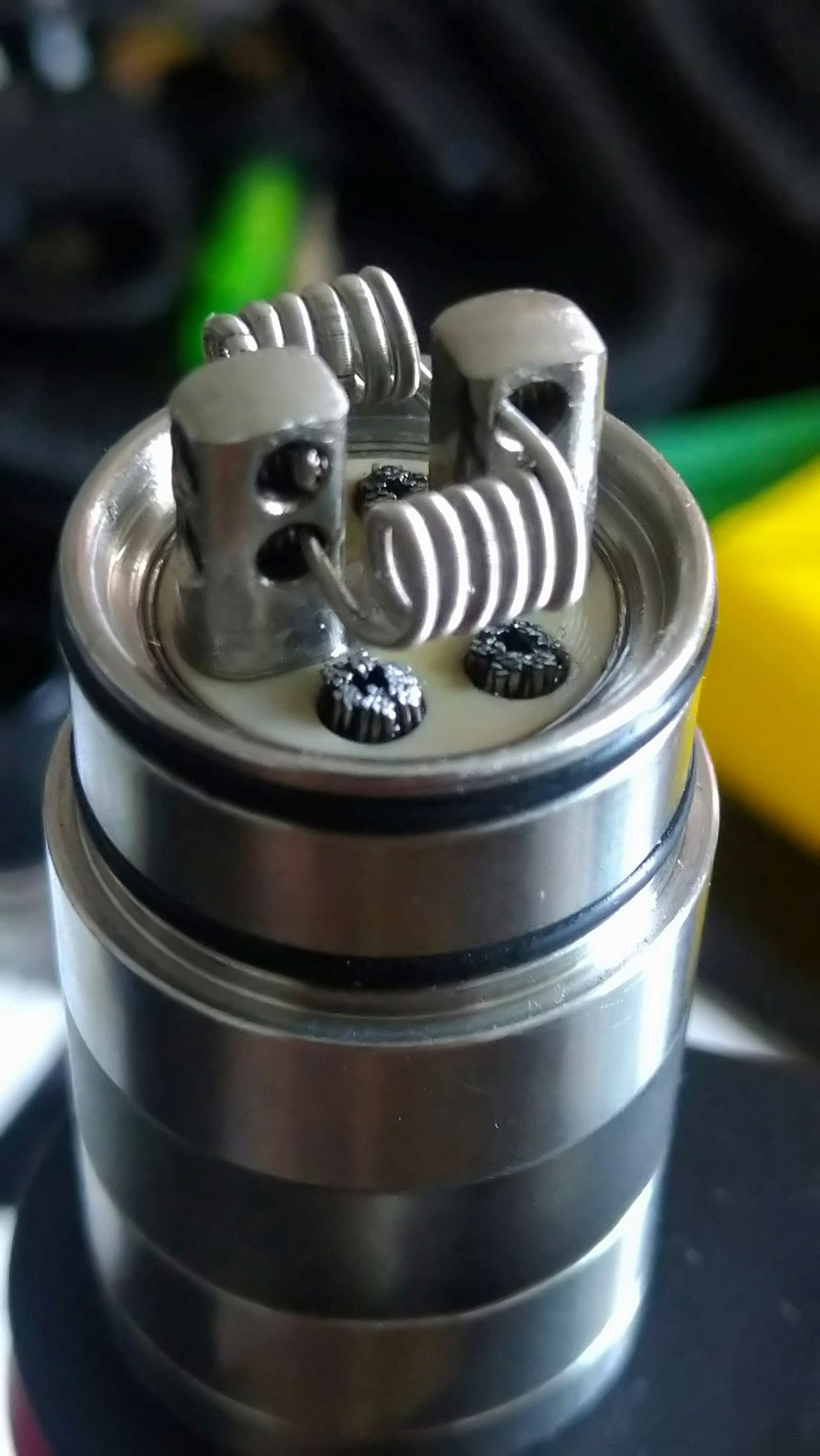 In der Brunhilde sitzen gerade Ni90 2x28, Ni80 1x38, 6 Windungen, 3,5 Durchmesser, 0,21 Ohm Dual und 88 Watt.