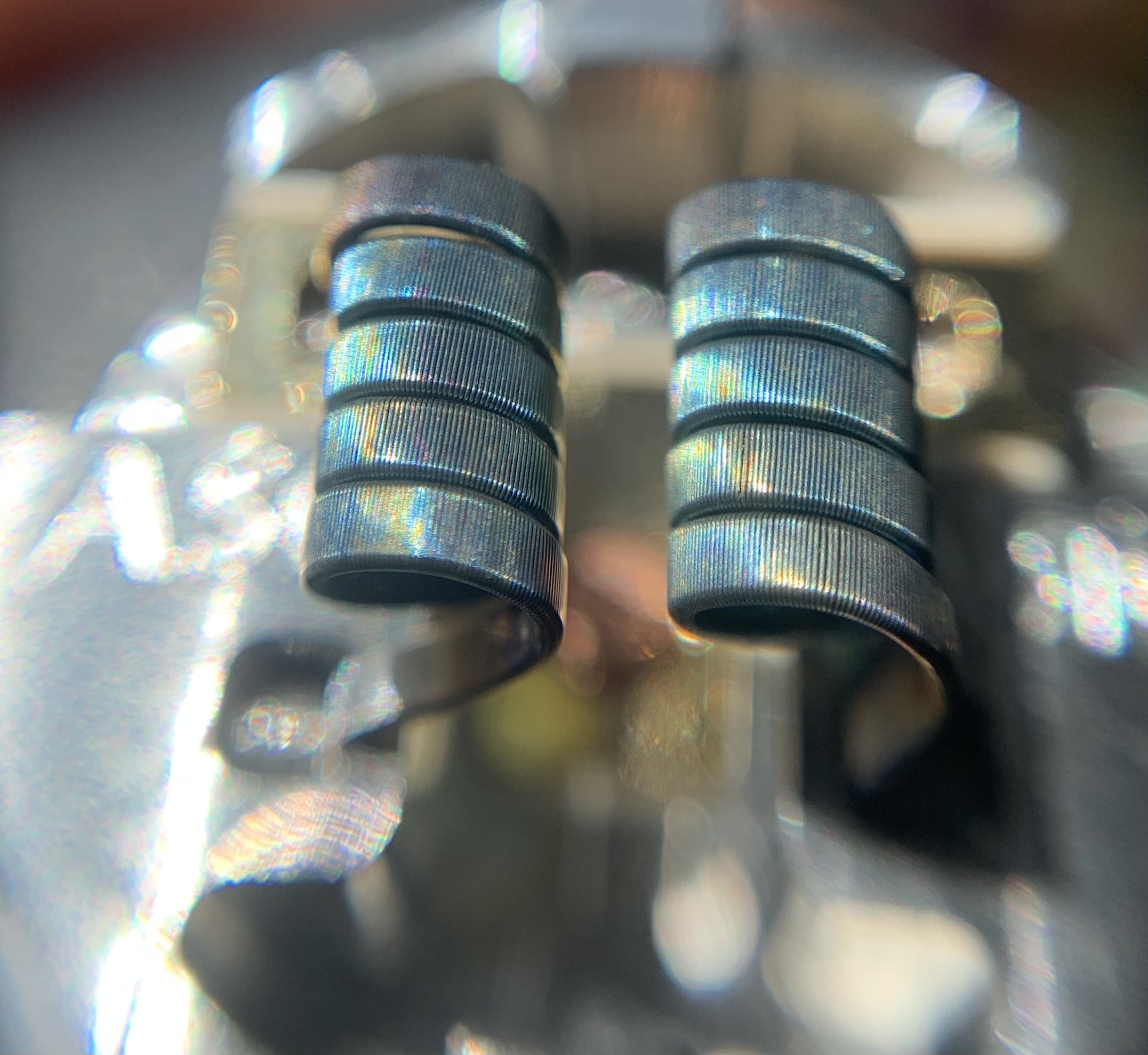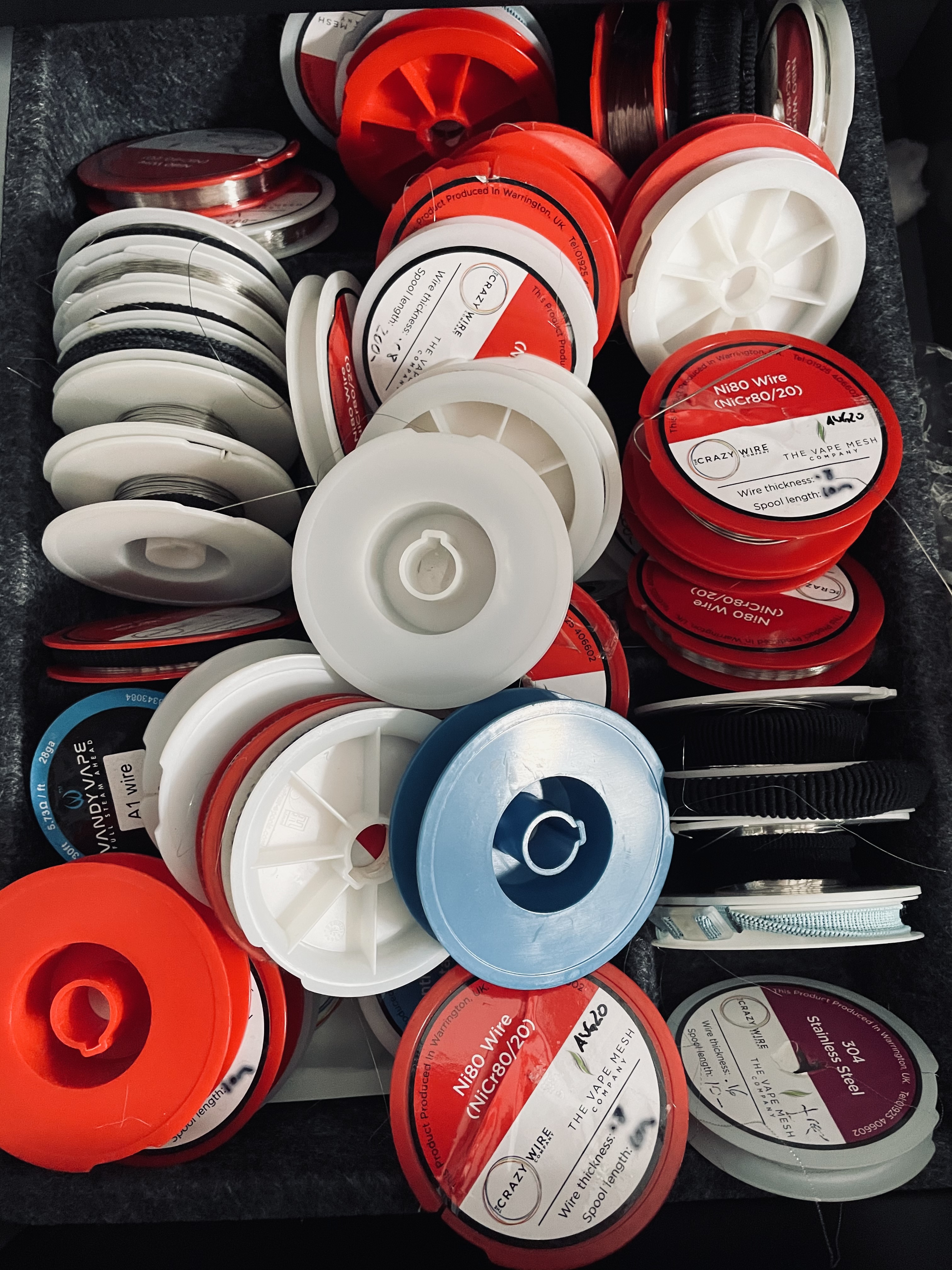 • Ja, sind recht angenehm. Aber auch 316 oder 304 sind genauso zu verarbeiten. Mit 304 kommst du bei 4 Windern, wie meinem Schorsch, aber tiefer raus. Statt 0,32 Ohm bei Ni80, oder 0,3 Ohm bei 316, bist du mit 304 bei 0,17 Ohm. Alles ungefähr, da halt Braid und alles jeweils mit 0,16mm Drahtstärke.