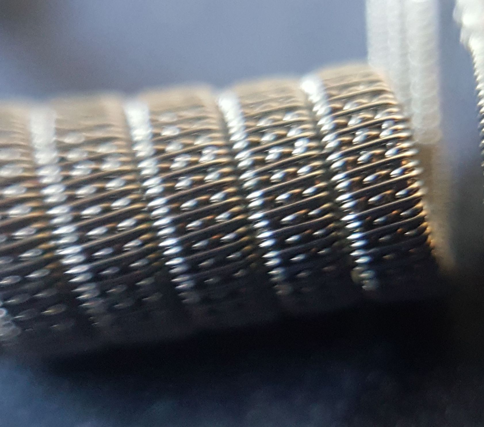 Kerne sind 3 x 0,36(27ga) Ni80, die ich mit 0,1mm (38ga) Ni80 gemantelt habe.