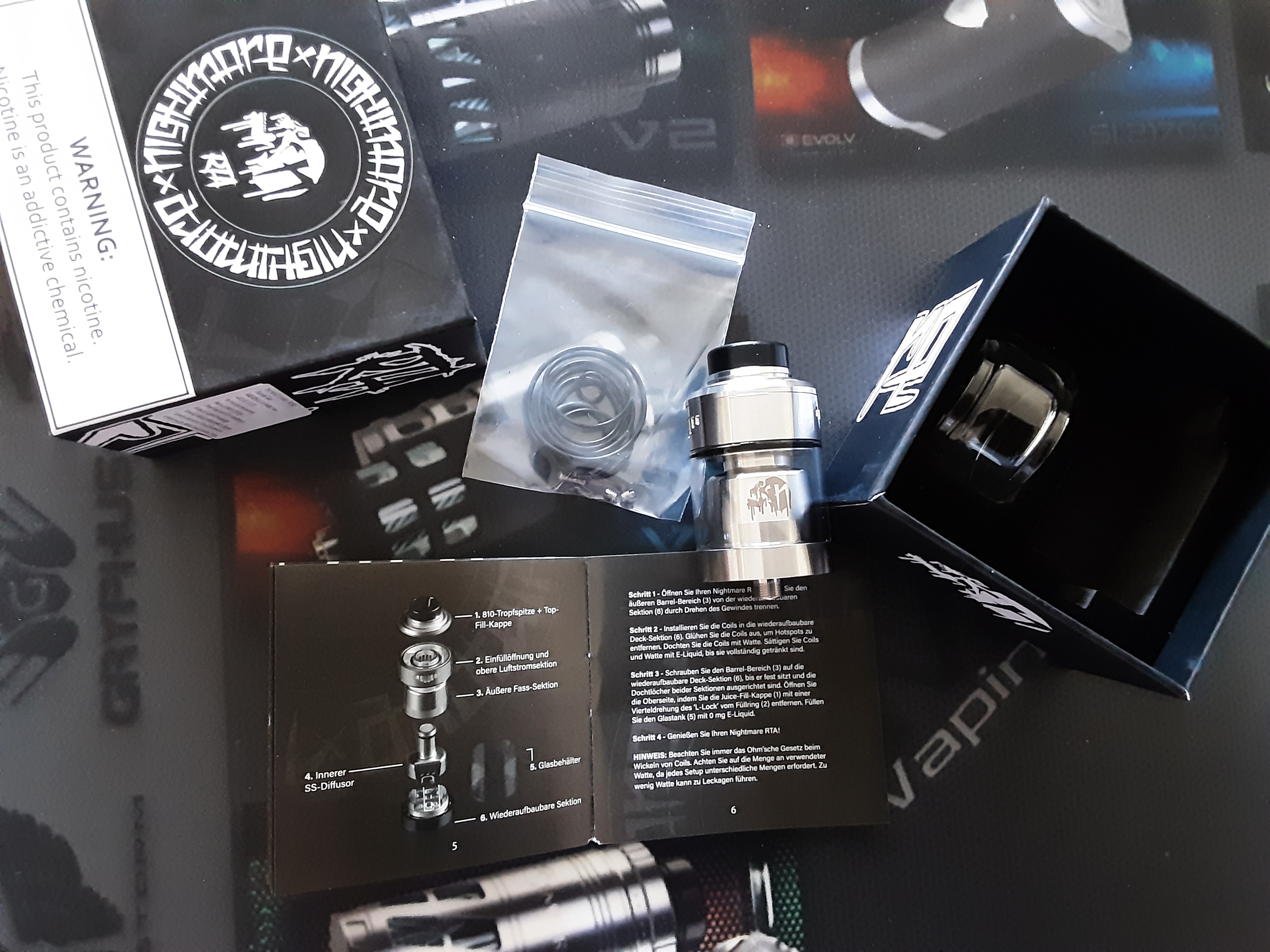Ich möchte euch hier den Nightmare RTA vorstellen, der sehnlichst von mir erwartet wurde. Um es vorweg zu nehmen: der RTA ist trotz seiner Optik nichts für die offen, noch offener, Scheunentor offen Fraktion.