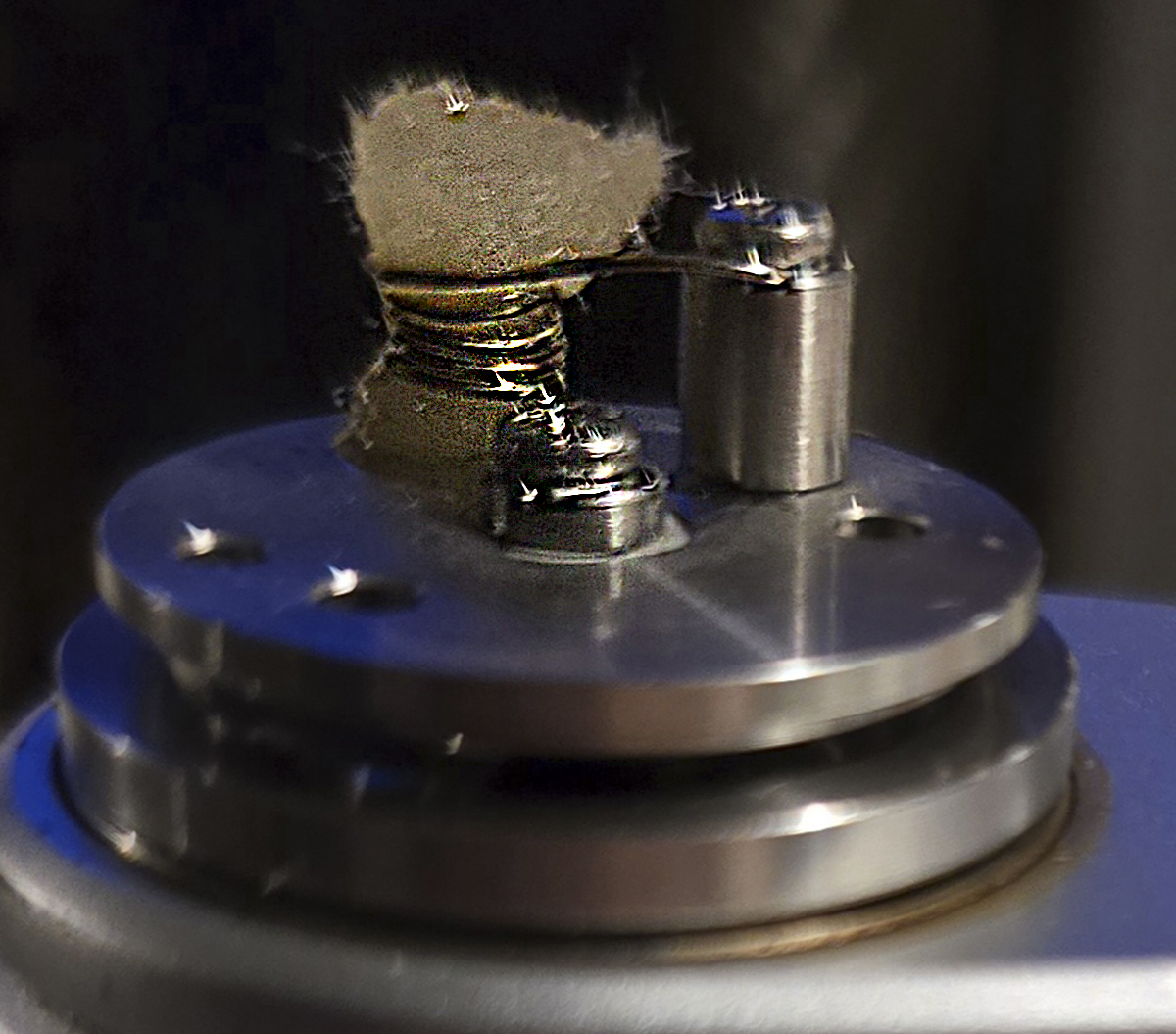 - Alles passt in die Dampferkammer, wobei die Watte sehr genau das Liquidzufuhr-Loch treffen muss!