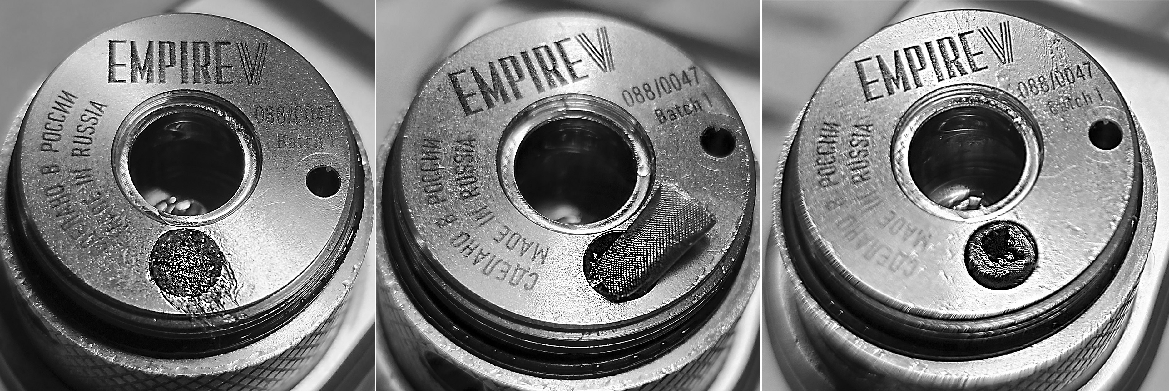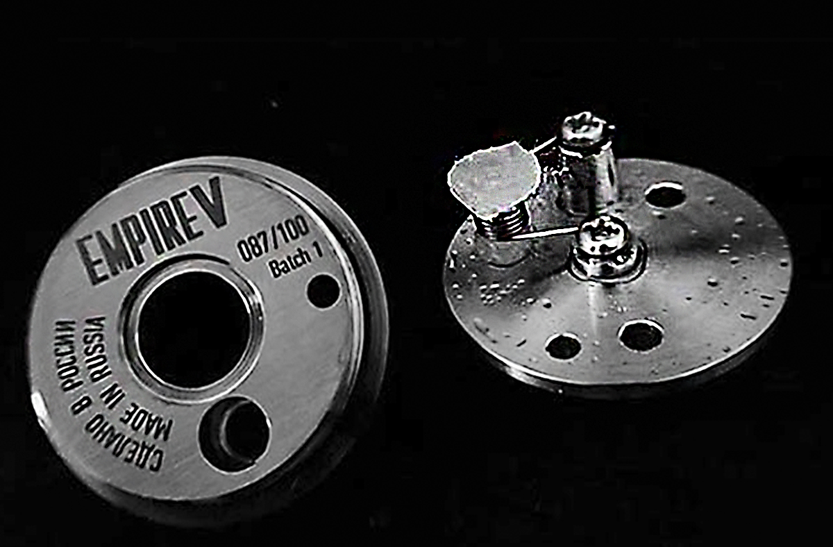 Laut Aufdruck ist dieser VD wohl in Russland kreiert worden und wurde von mir in China als Plagiat erworben. Der Tanks hat einen 23 mm großen Durchmesser und passt deshalb auch problemlos auf die Basis des FeV siehe hier: Empire V RTA: ein Laser gravierter Ersatztank für FEV V4.5S+