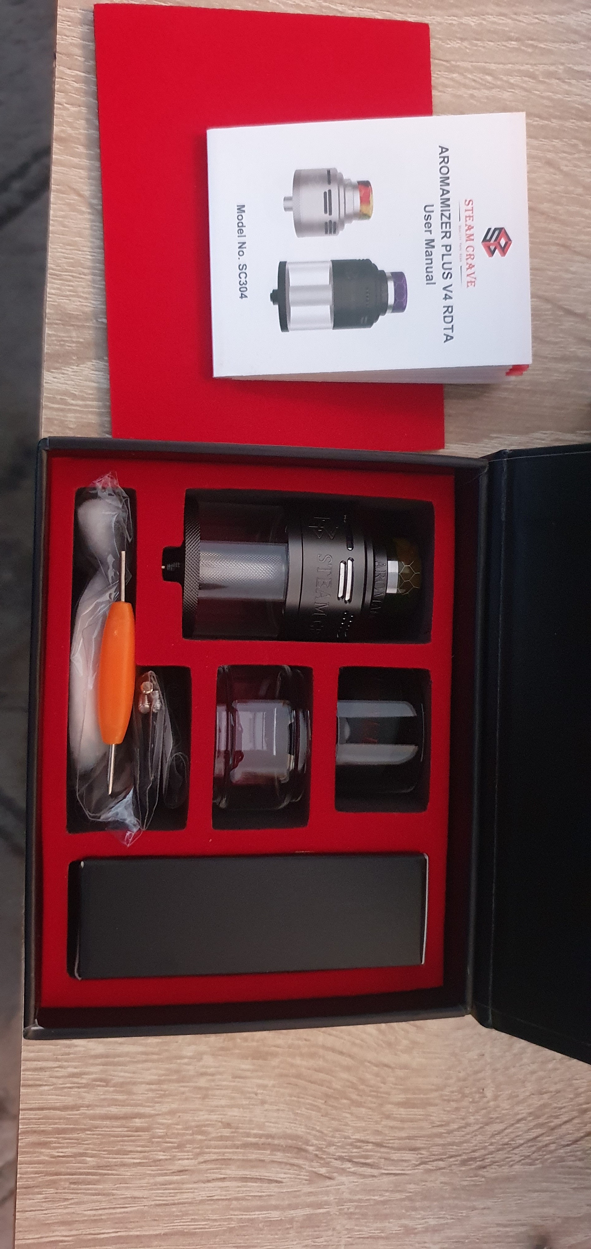 Steamcrave typisch in stabilem Karton mit innen samtartigem rotem Bezug