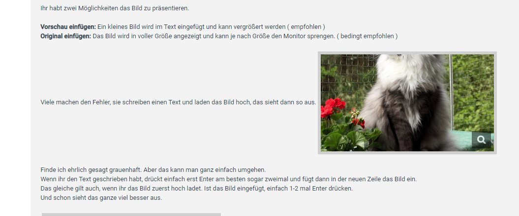 Mir ist aufgefallen, das einige ihre Bilder nicht richtig ins Forum bzw. im Beitrag einfügen.